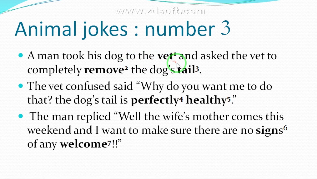 animal jokes number 3 : the dog's tail بازدید : 3 0 لایک shayeganaenglish منتشر شده در تاریخ 05 دی 1404 11:46 جک حیوانات به انگلیسی همراه با آموزش لغات جک حیوانات به انگلیسی ادامه تحصیلات و یادگیری