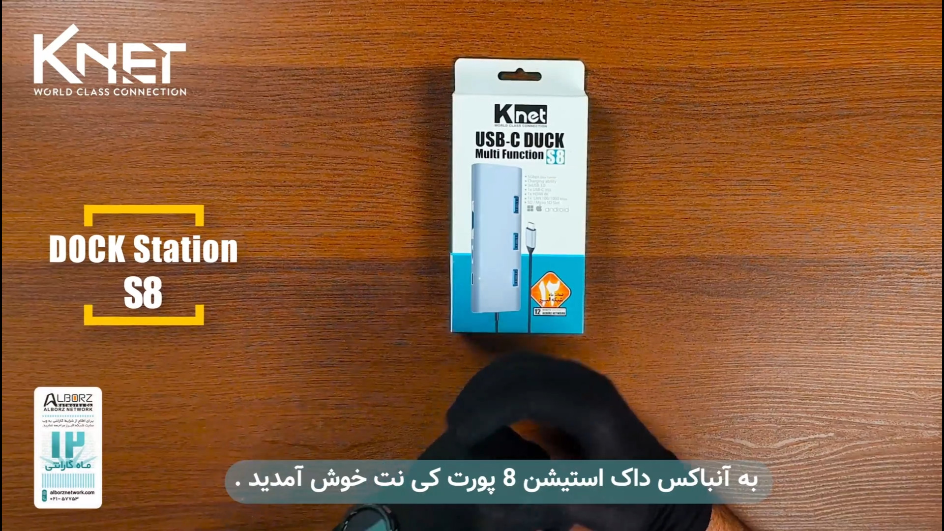 داک استیشن 8 پورت Type C کی نت K-S8(K-MFCMS808) محصولی کاربردی از شبکه البرز که دارای 8 پورت بوده که این پورت ها شامل سه پورت USB 3.0, یک پورت HDMI و 1 پورت LAN ,یک پورت SD و Micro SD و پورت PD می باشد. رزولوشن پورت HDMI این داک 4K با فرکانس 30 هرتز بوده و پورت ورودی این داک Type C می باشد و از فناوری شارژ سریع Power Delivery پشتیبانی میکند و همچینین دارای قابلیت شارژ و انتقال اطلاعات با حداکثر سرعت 5 گیگابیت بر ثانیه می باشد .این محصول دارای تکنولوژی تاندربولت می باشد و برای دستگاه هایی کاربرد دارد که درگاه تایپ C قابلیت انتقال تصویر را داشته باشد.