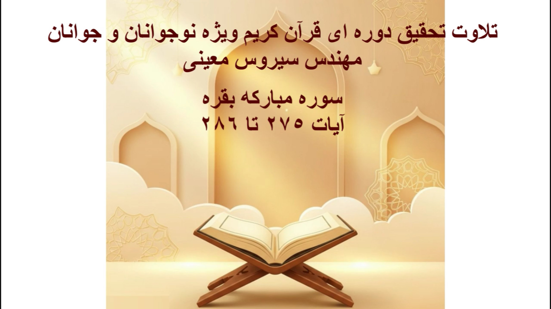 تلاوت تحقیق دوره ای قرآن : سوره بقره (آیات 275 تا 286) ویژه نوجوانان و جوانان
