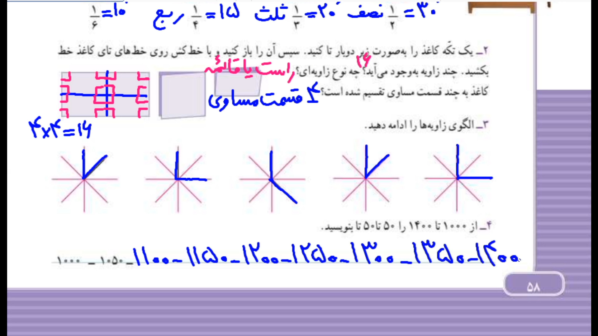 آموزش ریاضی فصل ۳ صفحه ۵۸ پایه سوم ابتدایی بازدید : 2 0 لایک کلاس سومی ها منتشر شده در تاریخ 06 دی 1404 13:20 حل مرور فصل صفحه ۵۸ تمرین شماره ۳ و ۴ ریاضی پایه سوم ابتدایی ادامه علوم پایه