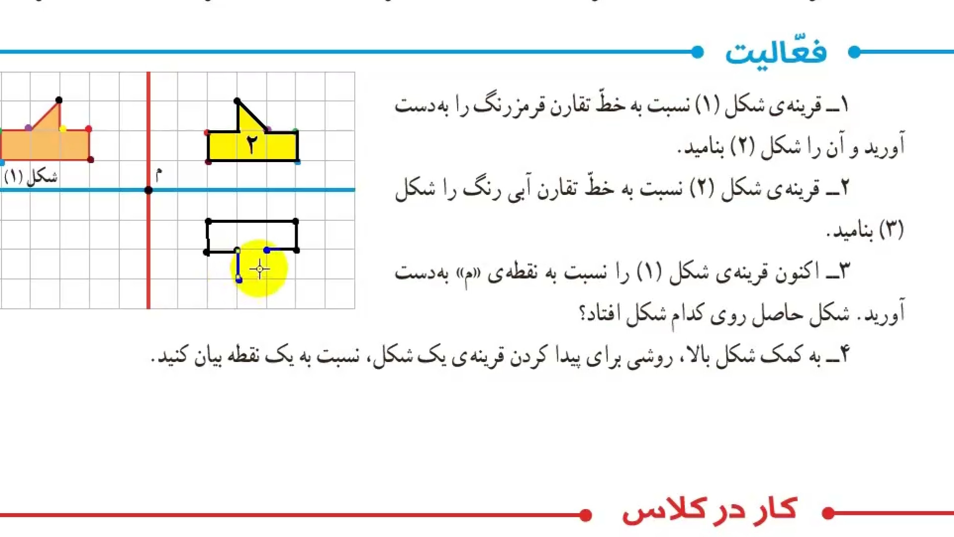 تقارن ص 65 بازدید : 51 3 لایک اموزش ریاضی منتشر شده در تاریخ 05 دی 1404 19:51 تقارن مرکزی ادامه تحصیلات و یادگیری