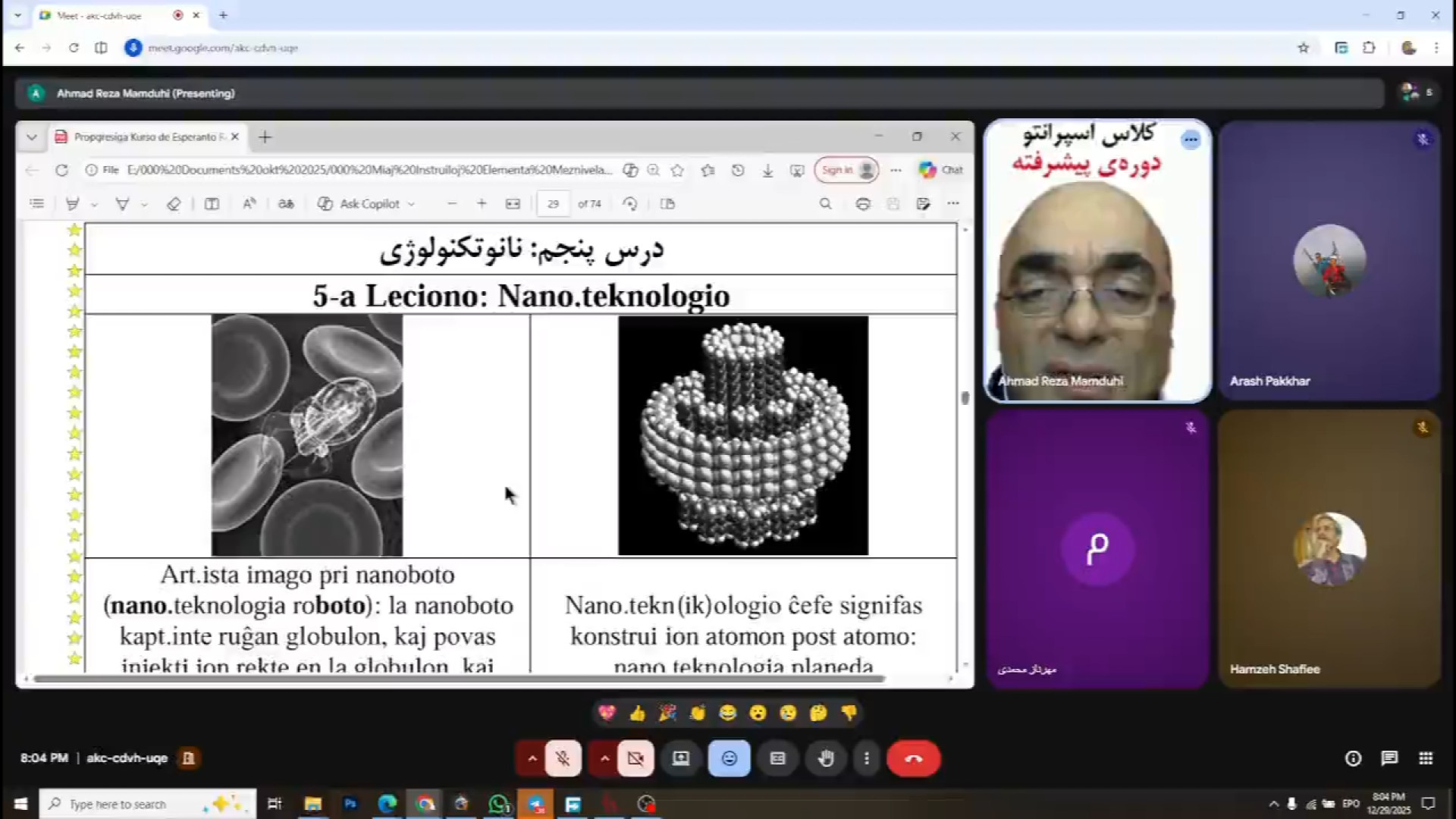 دورۀ آموزشی زبان جهانی اسپرانتو ️ « در سه سطح : مقدماتی، متوسط، و پیشرفته » با تدریس استاد ممدوحی جلسه هفتم- تاریخ برگزاری ۸ دی 1404