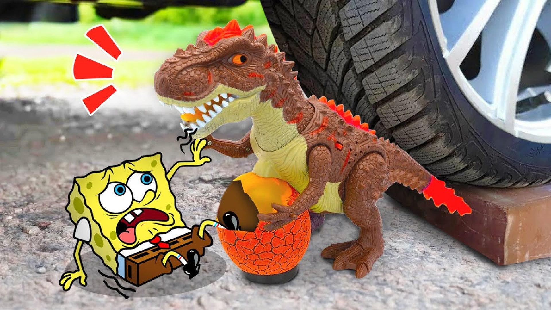 چالش خرد کردن باب اسفنجی و تخم مرغ دایناسور - له کردن زیر چرخ ماشین