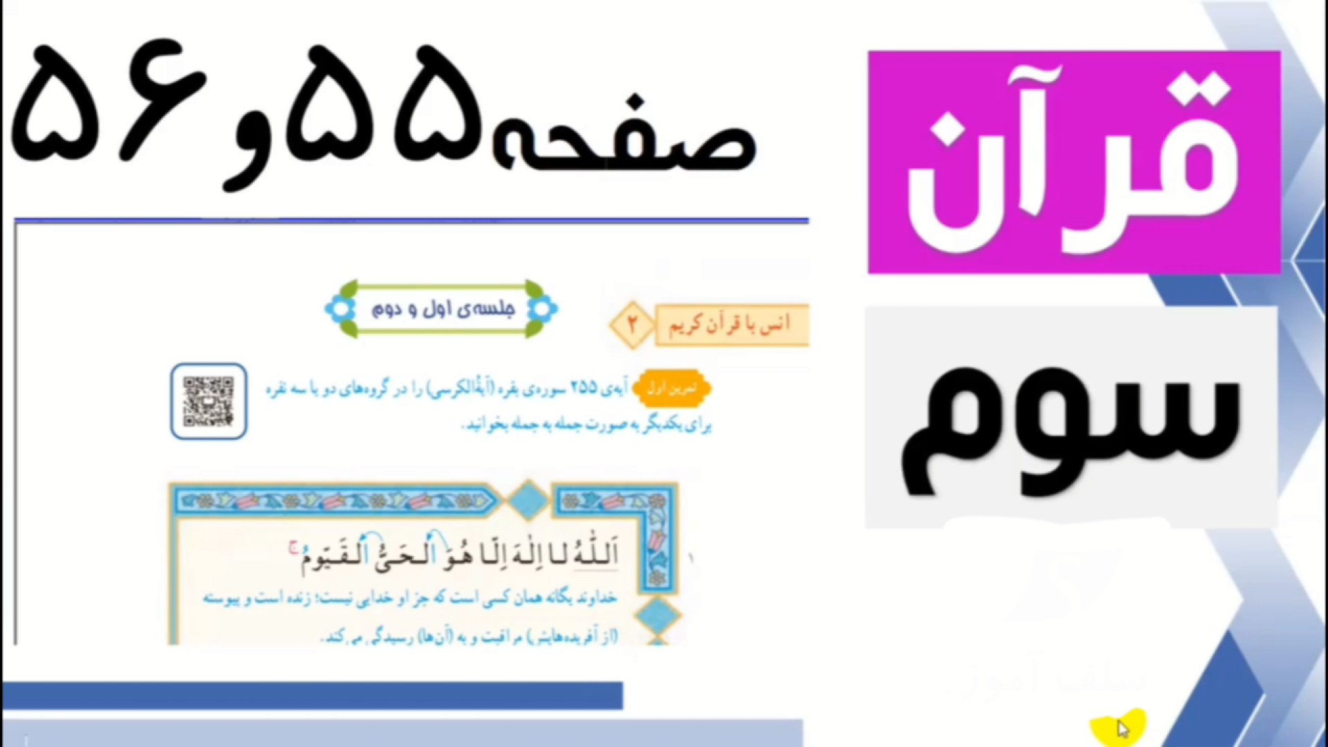 پایه سوم/انس با قرآن 2 صفحه 55 و 56 / خانم ضرونی بازدید : 5 0 لایک فیلم های آموزشی مدارس حکمت نبوی منتشر شده در تاریخ 09 دی 1404 14:08 ادامه تحصیلات و یادگیری