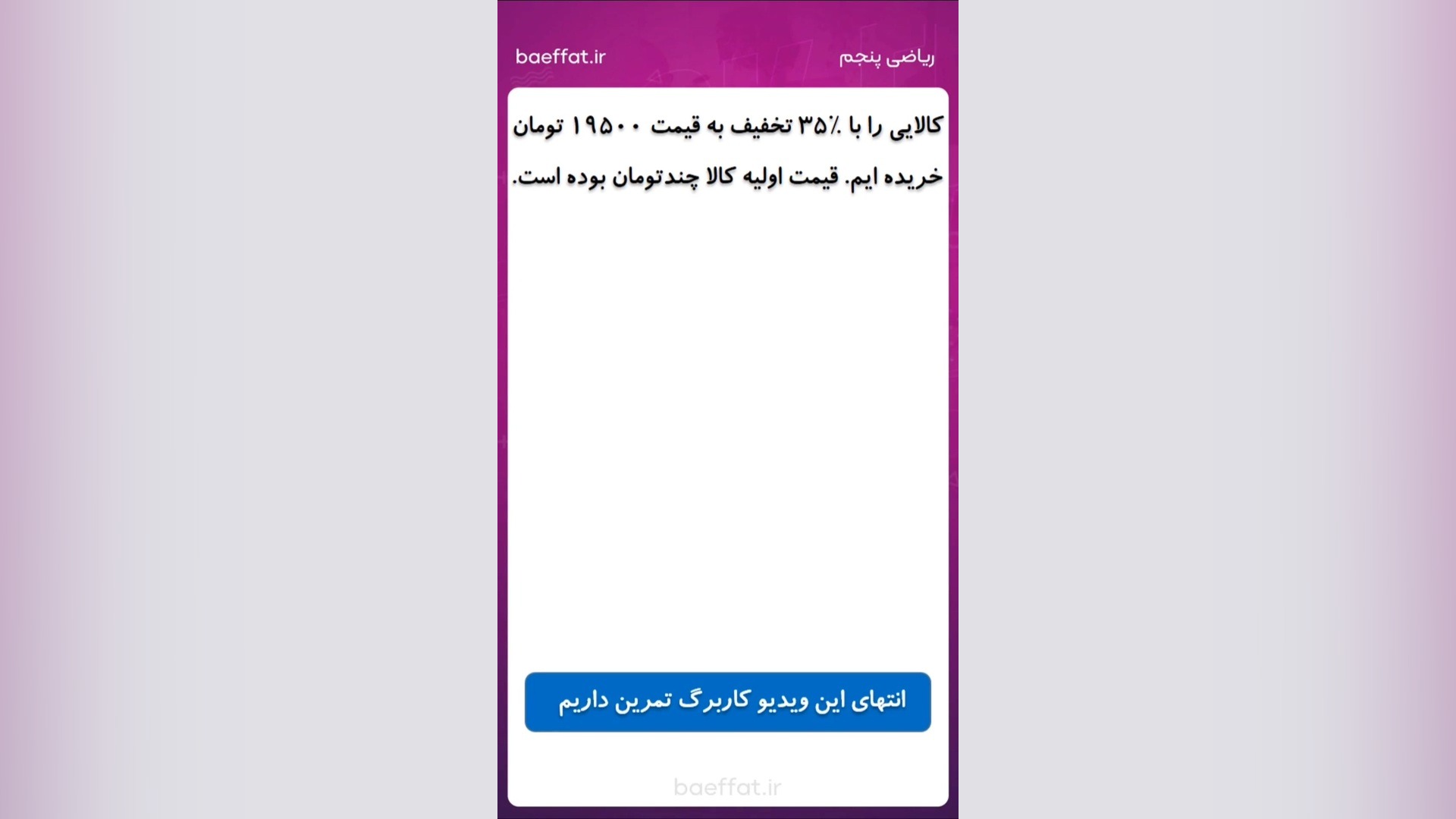 ویژه ی پنجم و ششم ️ هم مسئله های تخفیف رو حرفه ای یاد بگیر هم انتهای ویدیو کاربرگ تمرین و پاسخنامه هدیه بگیر فصل سوم ریاضی پنجم ، 4 تا درس داره ،نسبت ، نسبت های مساوی ، تناسب ، درصد شما در این پست هم روش تحلیل مسئله های تخفیف و درصد و حرفه ای یاد می گیرید هم انتهای ویدیو کاربرگ تمرین با پاسخنامه هدیه می گیرید. ️ با دست خالی ریاضی یادگرفتن کار سختیه، تو به یه منبع کمک آمورشی خوب نیاز داری. با پکیج ریاضی توربو از تدریس و تمرین تا آزمون و رفع اشکال همه چیز تو دستته، نگران هزینه اش هم نباش پکیج ریاض