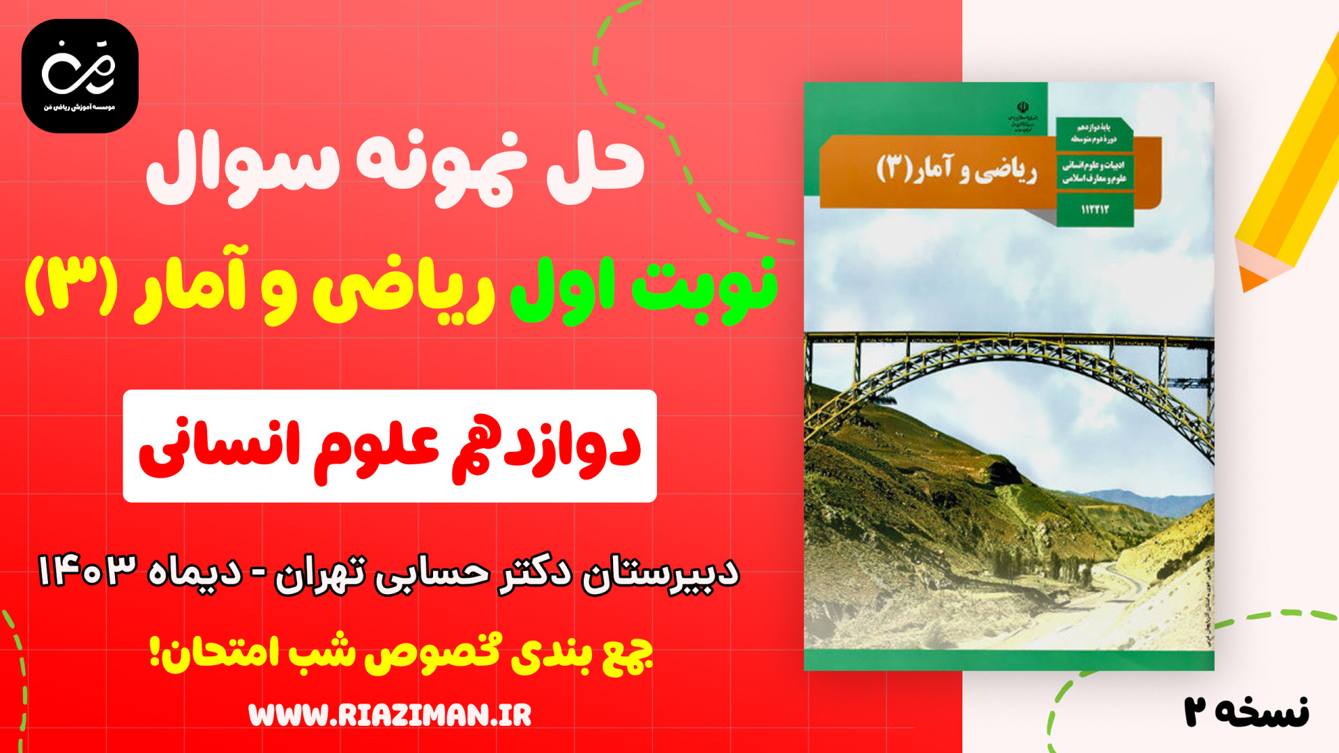 مرور کامل ریاضی و آمار ۳ دوازدهم انسانی شب امتحان | نمونه سوال نوبت اول | نسخه ۲