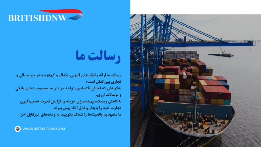 دیسکات انواع LC و ضمانتنامه تعهد پرداخت تأمین ارز واردات با LC یوزانس و اجاره SPLC از مسیر بانکهای پرایم با ۱۵٪ کاهش هزینه برای ساپلایر خارجی انتقال ارز با هزینه کمتر تا ۱۵٪ برای پرداخت به ساپلایر و شرکتهای خارجی تأمین مالی روی اسناد ششدانگ مسکونی تا ۴۰٪ ارزش کارشناسی با ریزش حدود ۳۰٪ انواع خدمات کوتاژ، از جمله مختومه کردن پروندهها در تالار اول و تالار دوم