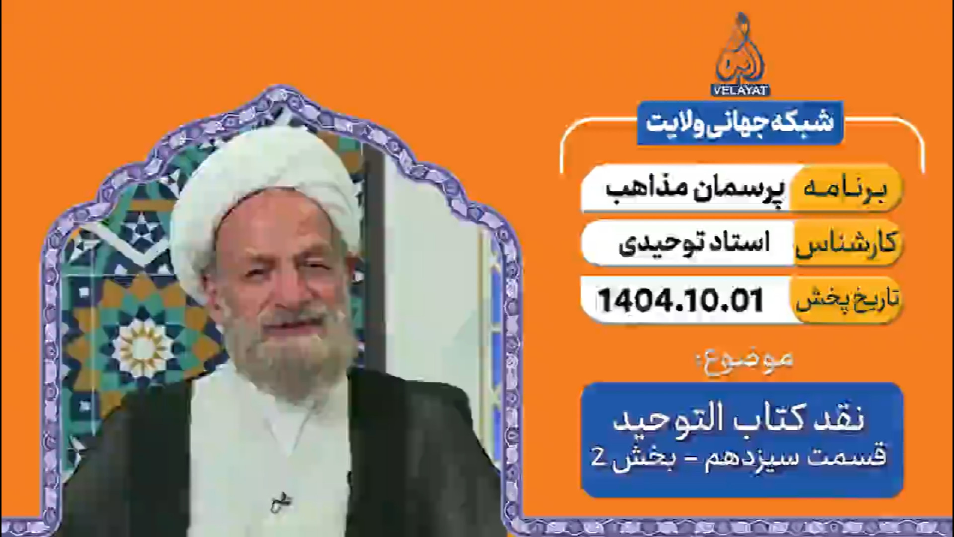 #کلیپ_منتخب برنامه زنده #پرسمان_مذاهب نقد کتاب التوحید محمد بن عبدالوهاب قسمت سیزدهم بخش دوم برداشت اشتباه از روایت نبوی استاد توحیدی به این شبهه پاسخ می دهند .... تاریخ پخش 1404/10/01 برنامه : #پرسمان_مذاهب پخش زنده و اطلاعات جامع شبکه ولایت zil.ink/velayattv