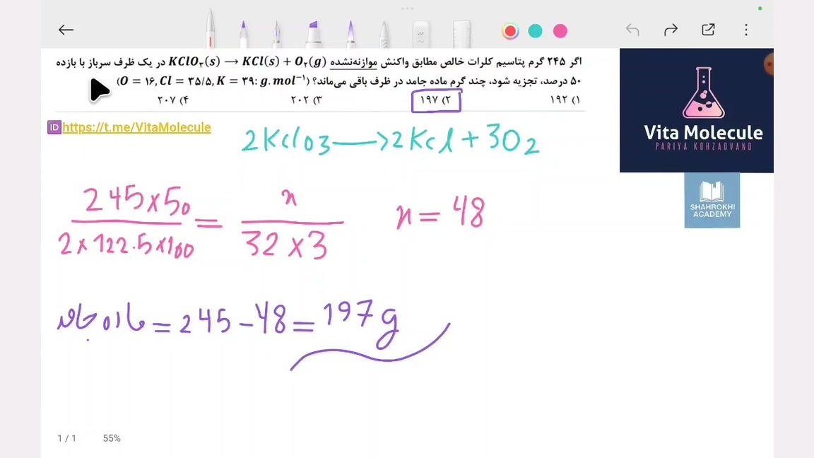 شیمی یازدهم، درصد جرمی بازدید : 2 0 لایک ویتا مولکول | Vita Molecule منتشر شده در تاریخ 05 دی 1404 21:06 شیمی یازدهم حل و بررسی تست از درصد جرمی ادامه تحصیلات و یادگیری