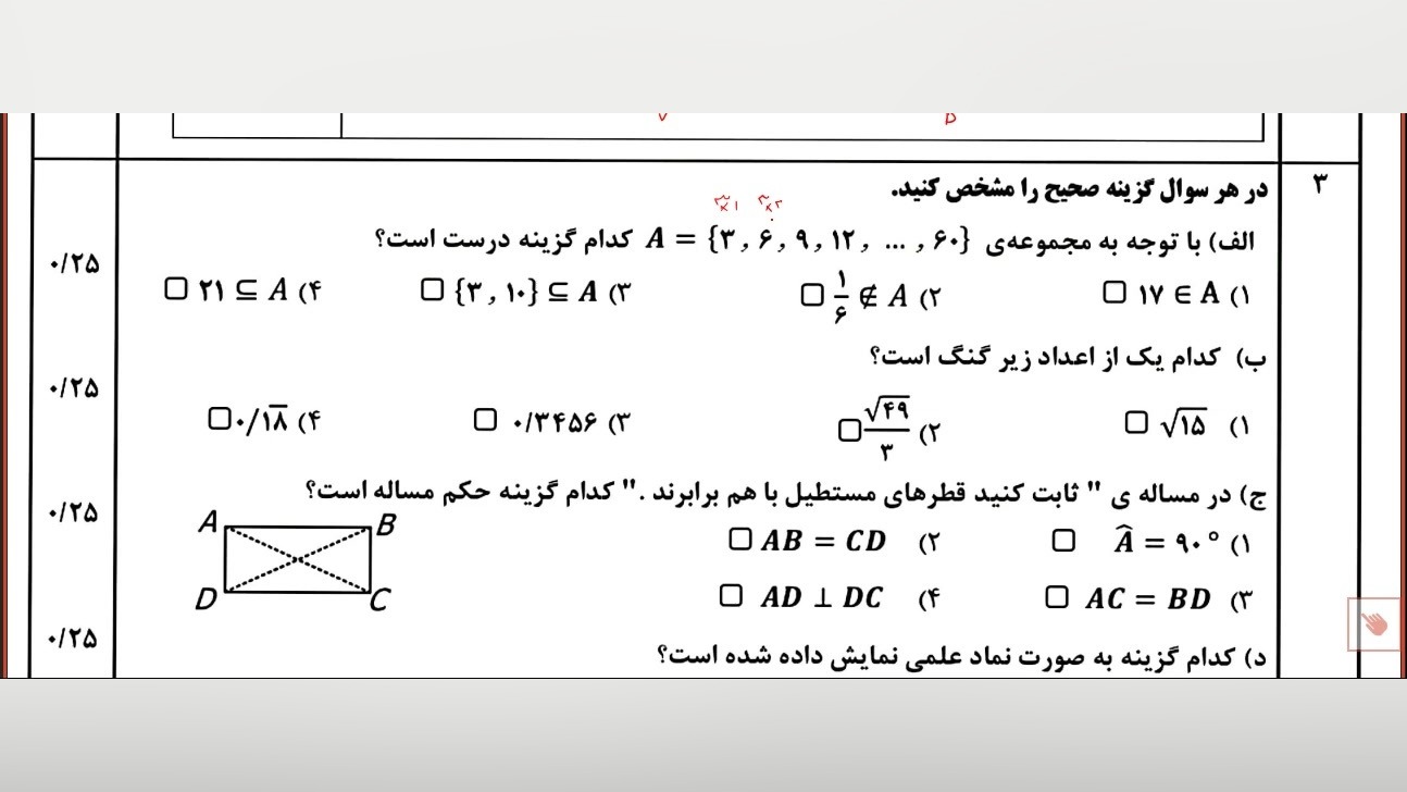 تحلیل سوالات نهایی نوبت اول ریاضی پایه نهم «مدرس:حسین محمدی اشرف» بازدید : 64 4 لایک حسین محمدی اشرف منتشر شده در تاریخ 04 دی 1404 15:48 تحلیل سوالات پر تکرار نهایی ریاضی نهم .تحلیل سوالات هماهنگ استانی پایه نهم ادامه تحصیلات و یادگیری