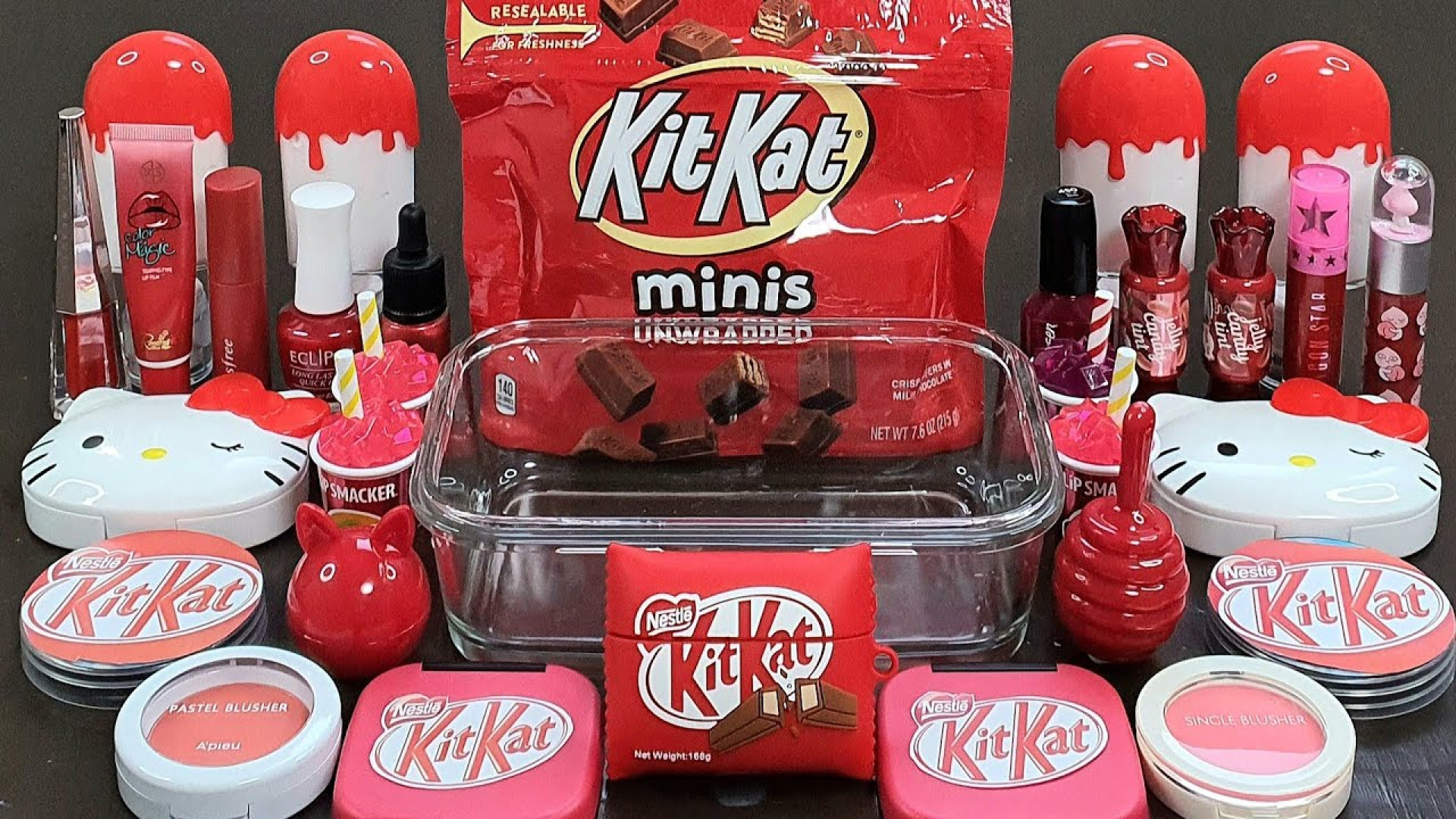 RED KITKAT Slime Mixing Random Into Slime! Satisfying Slime Video ASMR Thank you for watching! Please subscribe and like!