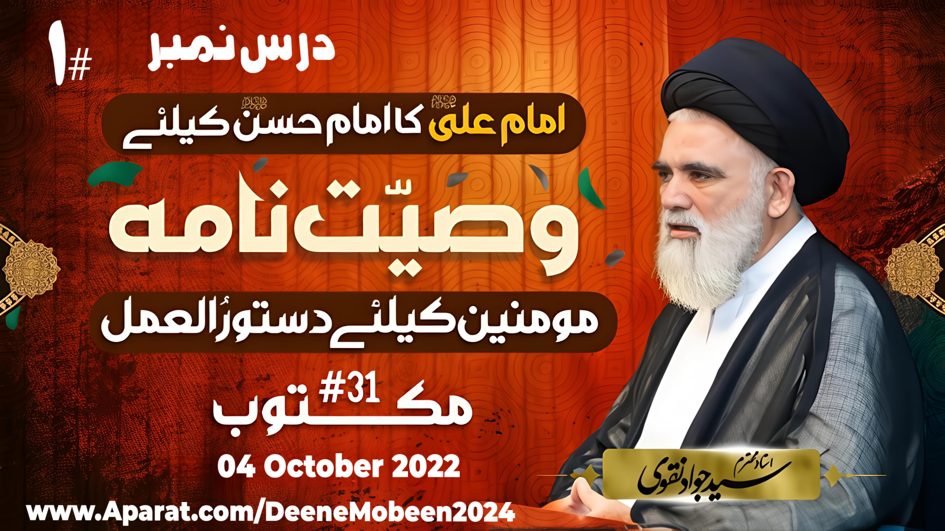 امام علیؑ کا امام حسنؑ کیلئے وصيت نامه ومومنين کیلئے دستور العمل مكتوب نمبر 31 اُستادِ محترم سید جواد نقوی حفظہ اللہ 4 اکتوبر 2022