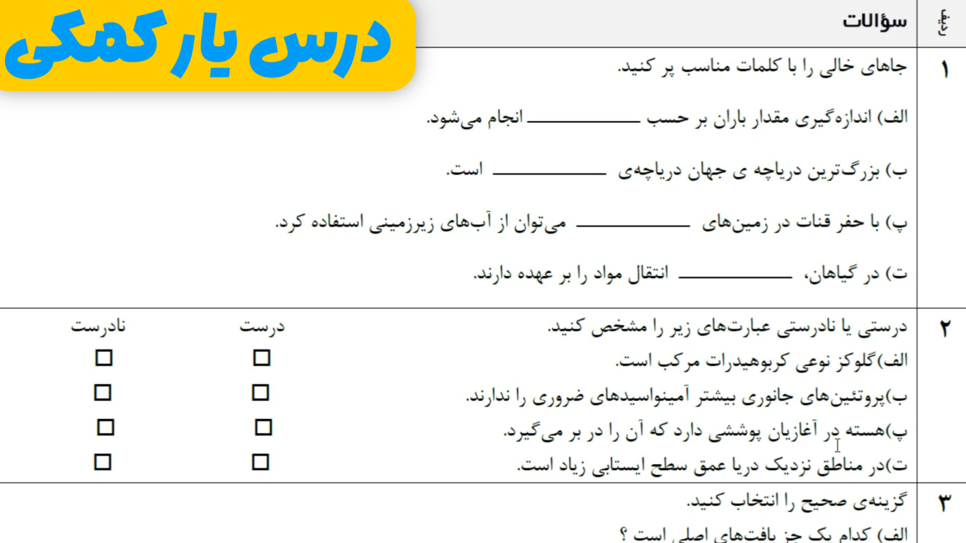 نمونه سوال امتحانی علوم تجربی هفتم راهنمایی قسمت اول همراه با درس یار کمکی به خانواده ما بپیوندید لایک یادتون نره نظر بذارید که حتما درموردش برنامه میسازم