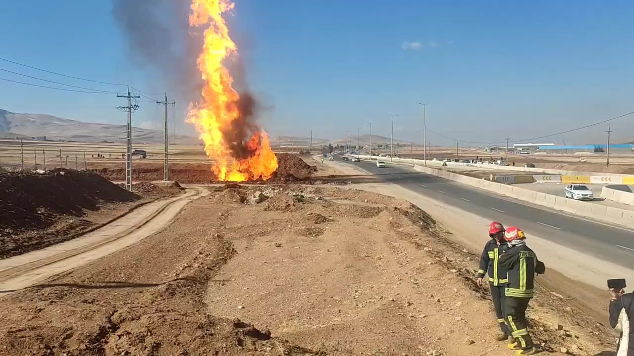 ترکیدگی خط لوله گاز اصلی در محور کرمانشاه به سراب نیلوفر و آتش سوزی