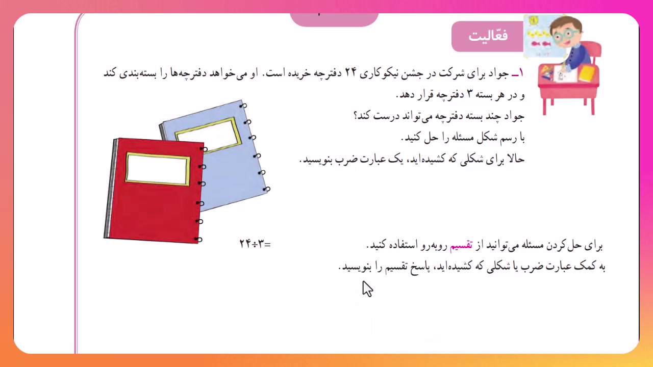 حل فعالیت صفحه ی 73 ریاضی سوم ابتدایی | سوم دبستان بازدید : 1 0 لایک کانال آموزشی آموزشی یار منتشر شده در تاریخ 08 دی 1404 21:24 حل ساده ی ریاضی سوم دبستان ( ابتدایی ) با روش نوین آموزشی . #حل_سوالات_کتاب ادامه تحصیلات و یادگیری