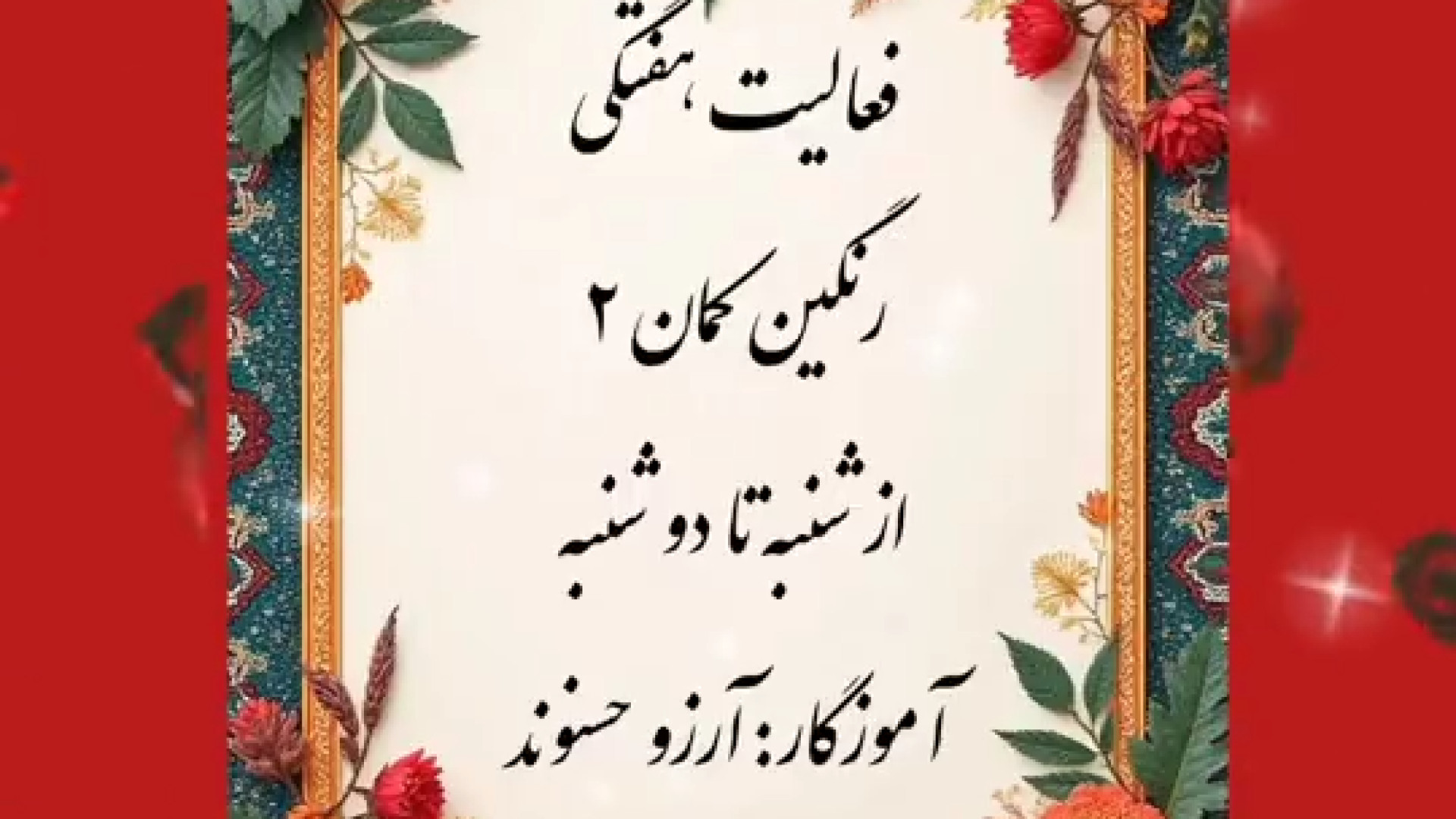 فعالیت هفتگی پسرهای پرتلاش رنگین کمان ۲ بازدید : 5 0 لایک arezoo hasanvand منتشر شده در تاریخ 04 دی 1404 11:28 فعالیت هفتگی هفته اول دی ماه آموزگار: آرزو حسنوند ادامه تحصیلات و یادگیری