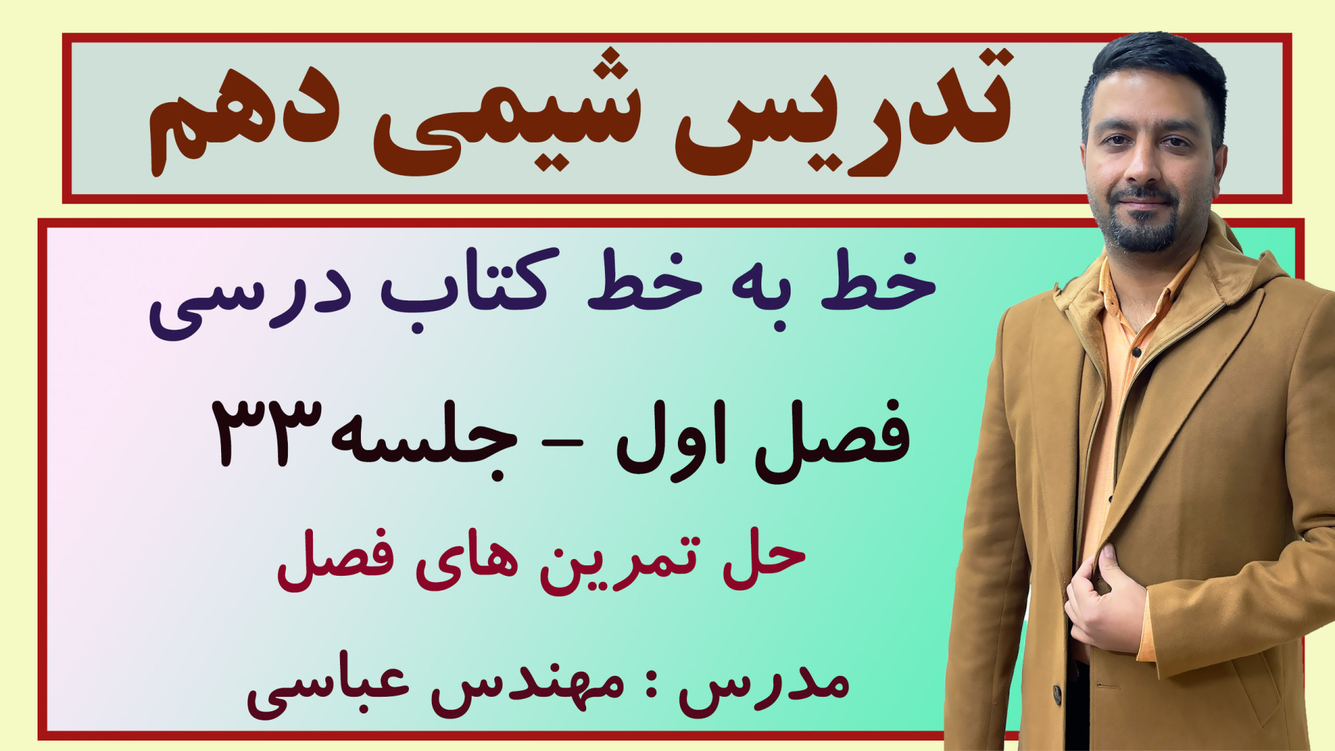 ادامه حل تمرین های فصل یک خط به خط شیمی دهم جلسه 33 با مهندس عباسی