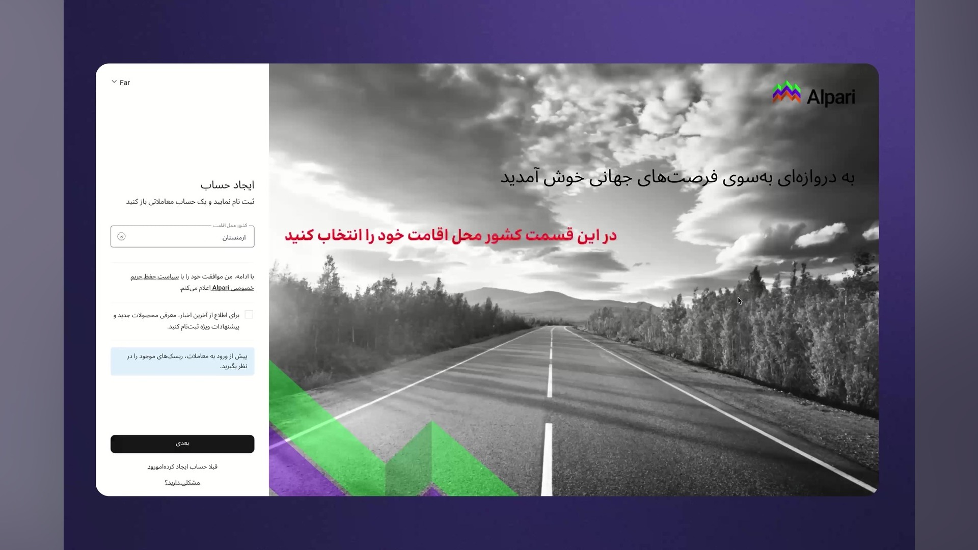 آموزش ثبت نام در بروکر آلپاری