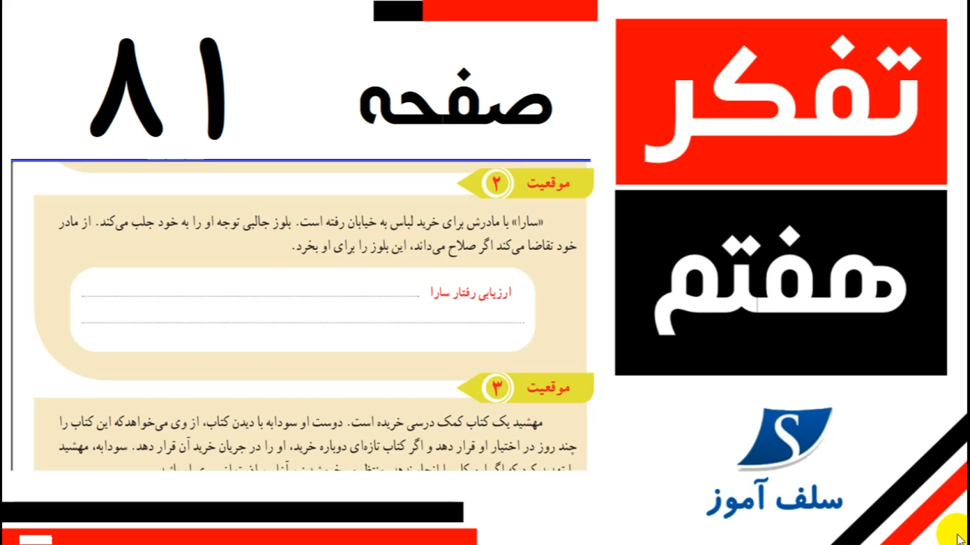 تفکر و سبک زندگی هفتم صفحه 81 | موقعیت 2 و 3 و 4 و ارزیابی رفتار