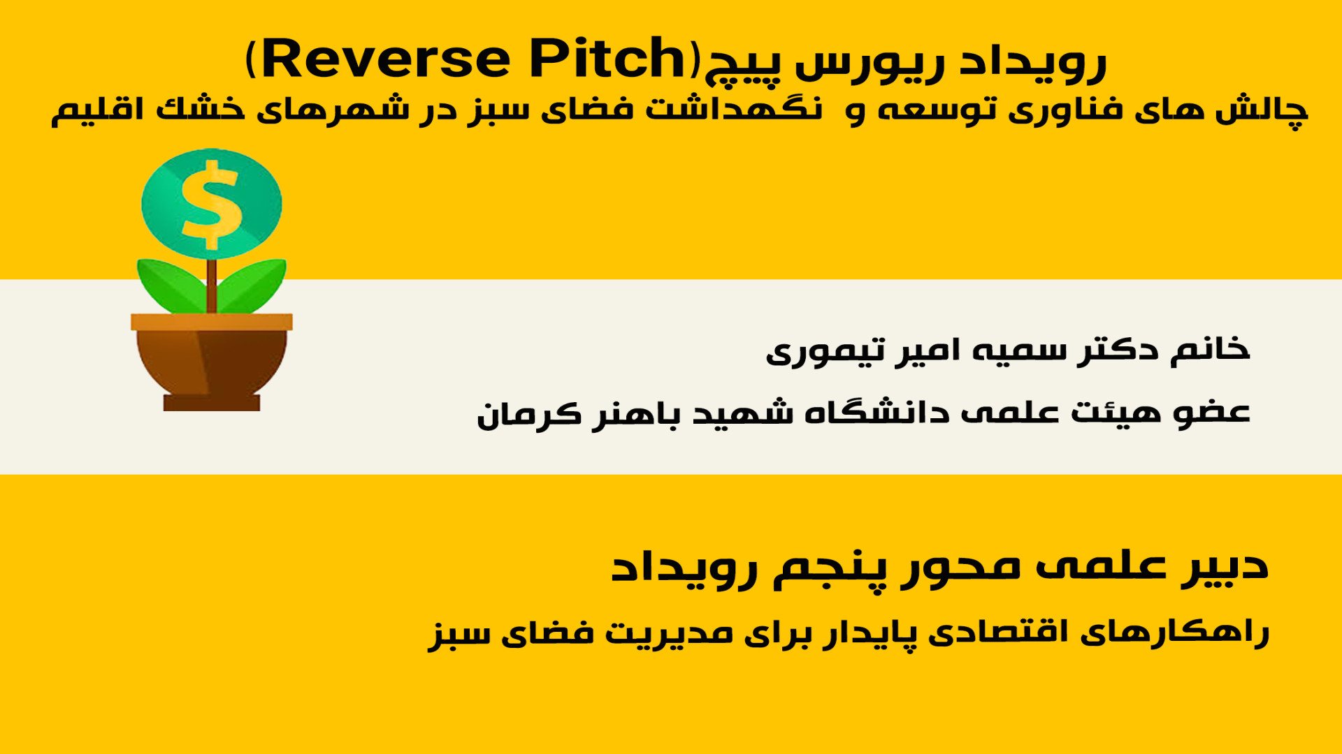 رویداد کشوری "ارائه معکوس چالش های فناوری توسعه و نگهداشت فضای سبز در شهرهای خشک اقلیم کلیپ معرفی محور پنجم رویداد: راهکارهای اقتصادی پایدار برای مدیریت فضای سبز- زمستان 1404