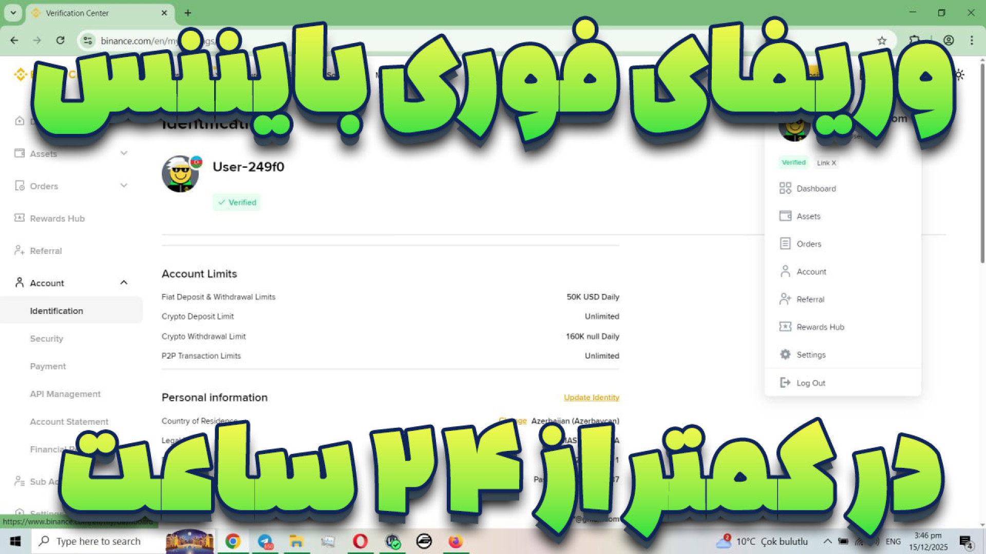 وریفای بایننس در کمتر از ۲۴ ساعت | تایید قطعی و تضمینی
