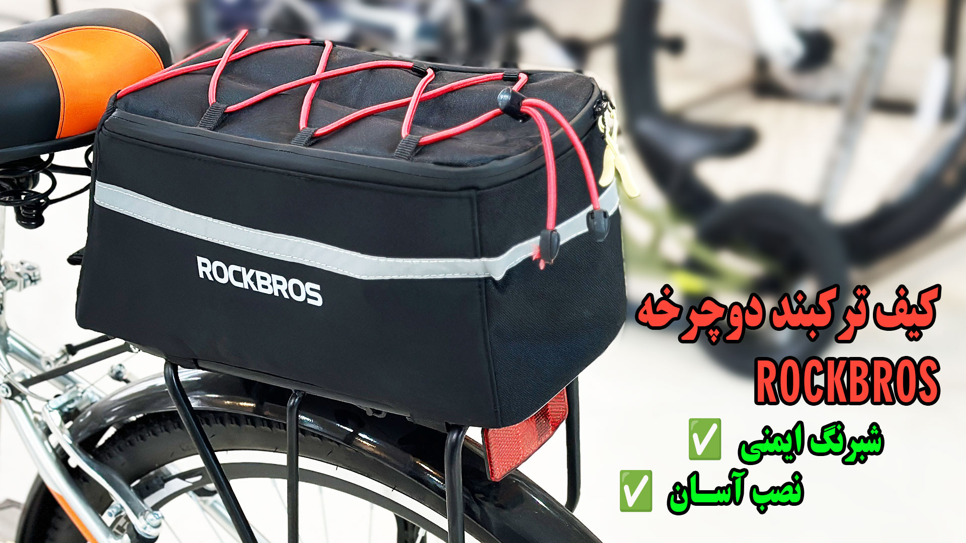 کیف ترکبند دوچرخه ROCKBROS دارای نوار شبرنگ ایمنی مناسب استفاده روزمره و مسیرهای شبانه نصب آسان روی ترکبند آماده ارسال موجود در فروشگاه نیکان بایک