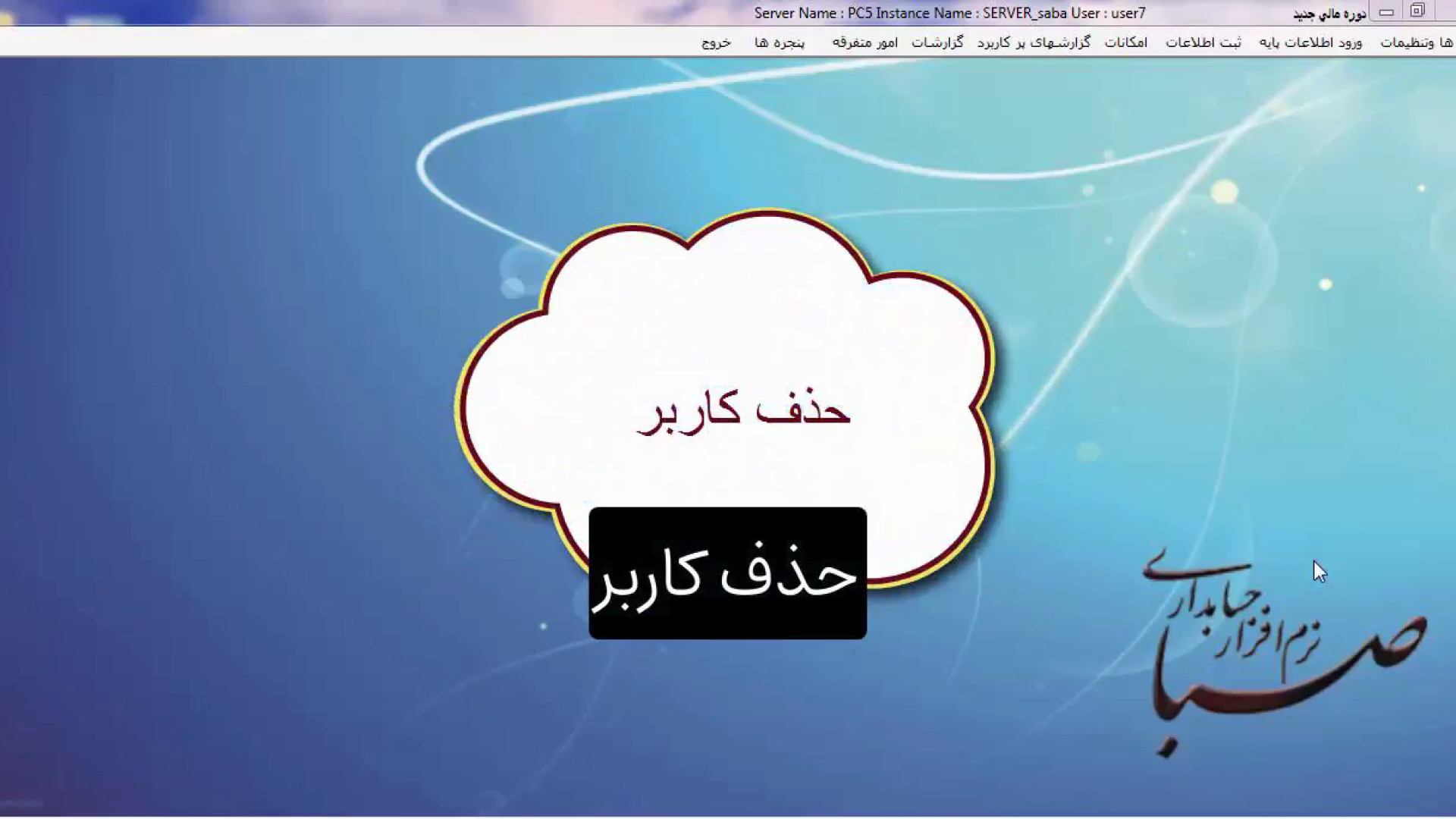 ویدیو آموزشی برنامه حسابداری شیراز صبا فیلم شماره32 آیتم حذف کاربر