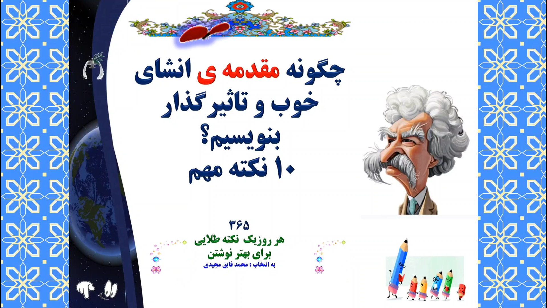چگونه مقدمه ی انشای خوب و تاثیرگذار بنویسیم؟ 10 نکته مهم 365 هر روزیک نکته طلایی برای بهتر نوشتن به انتخاب : محمد فایق مجیدی