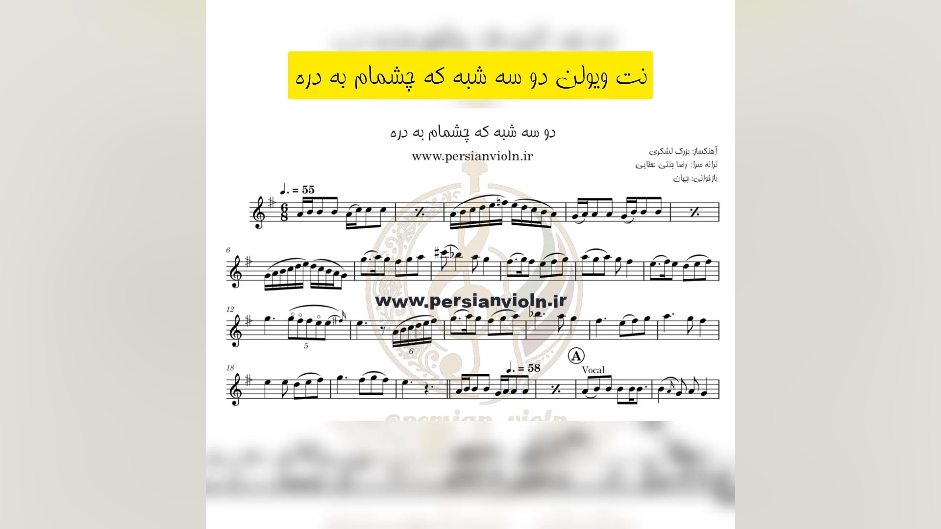 نت ویولن دو سه شبه که چشمام به دره | جهان | اثر بزرگ لشگری