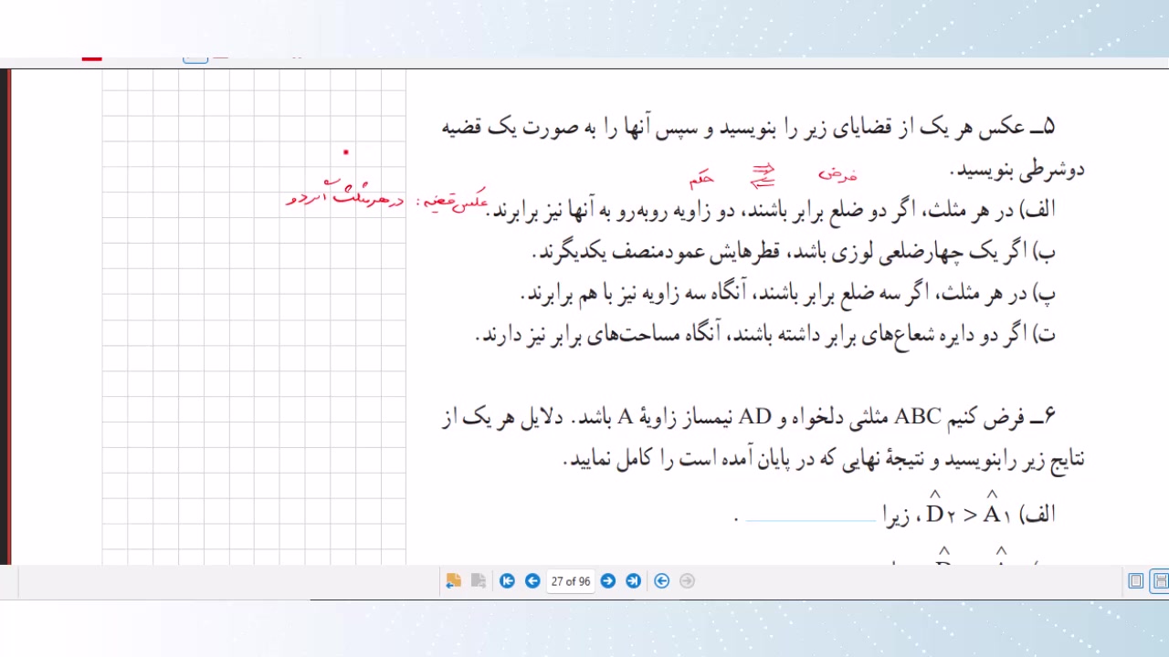 حل تمرین 5 صفحه 27 هندسه دهم,عکس قضیه و قضیه دو شرطی,لایک و کامنت یادتون نره,کانال من رو دنبال کن