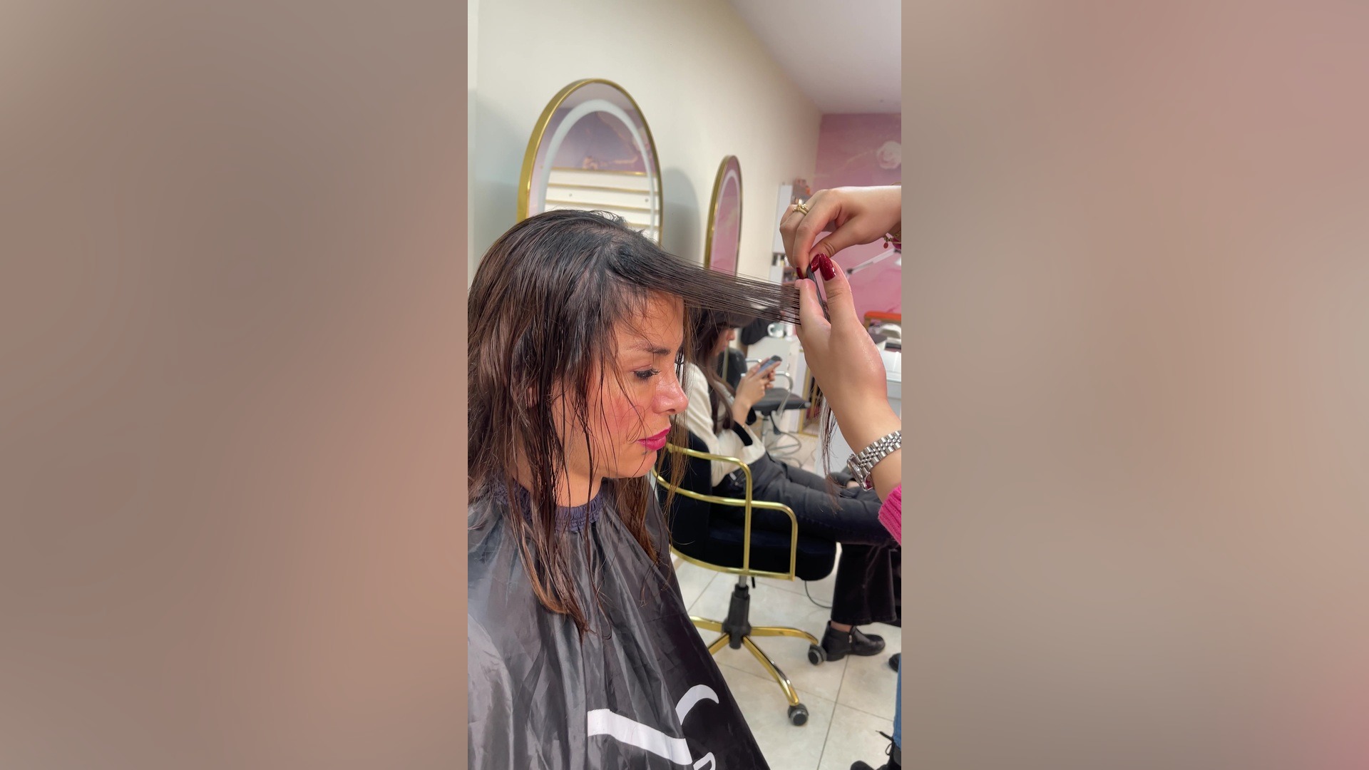 چتری پردهای (Curtain Bangs) برخلاف چتری یکدست و صاف، در مرکز پیشانی بلندتر و در دو طرف صورت کوتاهتر و دارای زاویه است تا حالت کرکی و پلکانی طبیعی پیدا کند و به راحتی به دو طرف صورت سِپَر شود. برای اجرای دقیقتر: انتخاب ناحیه: مثلث مویی که از جلوی سر جدا میکنید، نباید خیلی عریض باشد (حدوداً از لبه بیرونی ابروها بیشتر نرود) و نقطه رأس آن میتواند بسته به میل شما روی فرق سر یا حتی نزدیک خط رویش مو باشد. هرچه مثلث باریکتر باشد، نتیجه ظریفتر و هرچه پهنتر باشد، حجم بیشتری ایجاد میکند. تعیین نقطه شروع (Guide): کوتاه کردن مو از مرکز پیشانی و با طول دلخواه (مثلاً روی پل بینی) به عنوان راهنما (Guide) انجام میشود. این رشتهها، بلندترین نقطه چتری شما خواهند بود. ایجاد زاویه پردهای: پس از تعیین راهنما، مهمترین بخش آغاز میشود. موهای کناری را نه به سمت پایین، بلکه به سمت گوشها و با زاویه حدود ۴۵ درجه از صورت دور میکنید و سپس کوتاه میکنید. این زاویهدهی دقیقاً همان چیزی است که باعث میشود موها به شکل پرده درآیند. نکته کلیدی: هنگام کوتاه کردن کنارهها، قیچی را نه افقی، بلکه مطابق با خط زاویهای که موها را کشیدهاید، مورب نگه دارید. لایهبندی و نازککردن (Texturizing): پس از تعیین فرم کلی، برای جلوگیری از حالت "کلاهخودگی" و سنگین شدن، از تکنیک نازک کردن با قیچی (Point Cutting یا Slithering) استفاده میشود. به این صورت که قیچی را عمودی (نه افقی) روی نوک موها و حتی در طول برخی از رشتهها قرار داده و برشهای سبک و سریع میزنید. این کار حجم را کاهش میدهد و به مو اجازه میدهد تا به صورت طبیعیتر و بازشو (Feathered) روی هم بیفتد. استایلدهی نهایی: رمز زیبایی این چتری در استایل آن است. پس از شستشو، با یک برس گرد (Round Brush) موها را از مرکز پیشانی به دو طرف چپ و راست تقسیم کرده و همزمان با سشوار خشک و حالت میدهید. میتوانید از یک واتراسپری یا کرم موی سبک در ابتدای کار برای کنترل بهتر استفاده کنید. برای فرم دهی نهایی، کمی موس یا فوم سبک به کف دست زده و با حرکتی چرخشی به انتهای چتری بزنید تا جدا شدن تارها و حالت پردهای تشدید شود. هشدار نهایی: اگر موهای شما فر یا مجعد است، باید طول نهایی را بلندتر از حد دلخواه در نظر بگیرید. https://banoohengameh.com/