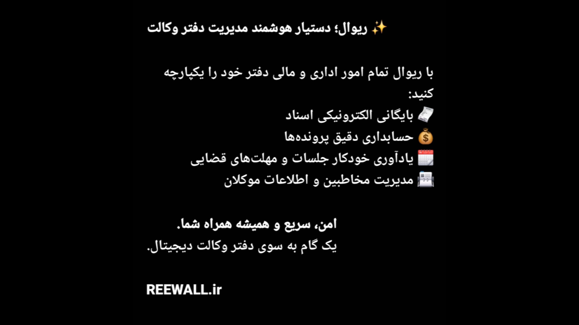 شارژ سریع و آنلاین حساب کاربری ریوال برای ادامه استفاده از امکانات مدیریت پرونده، موکلین و خدمات دفتر وکالت. وب سایت ریوال : https://reewall.ir/