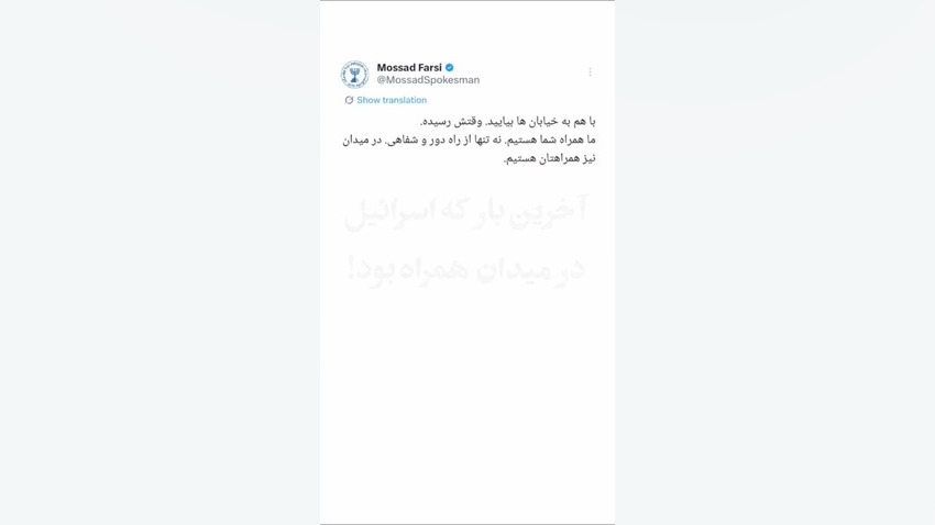 اسرائیل گفته بیاید تو خیابونا، ماهمراه شماهستیم