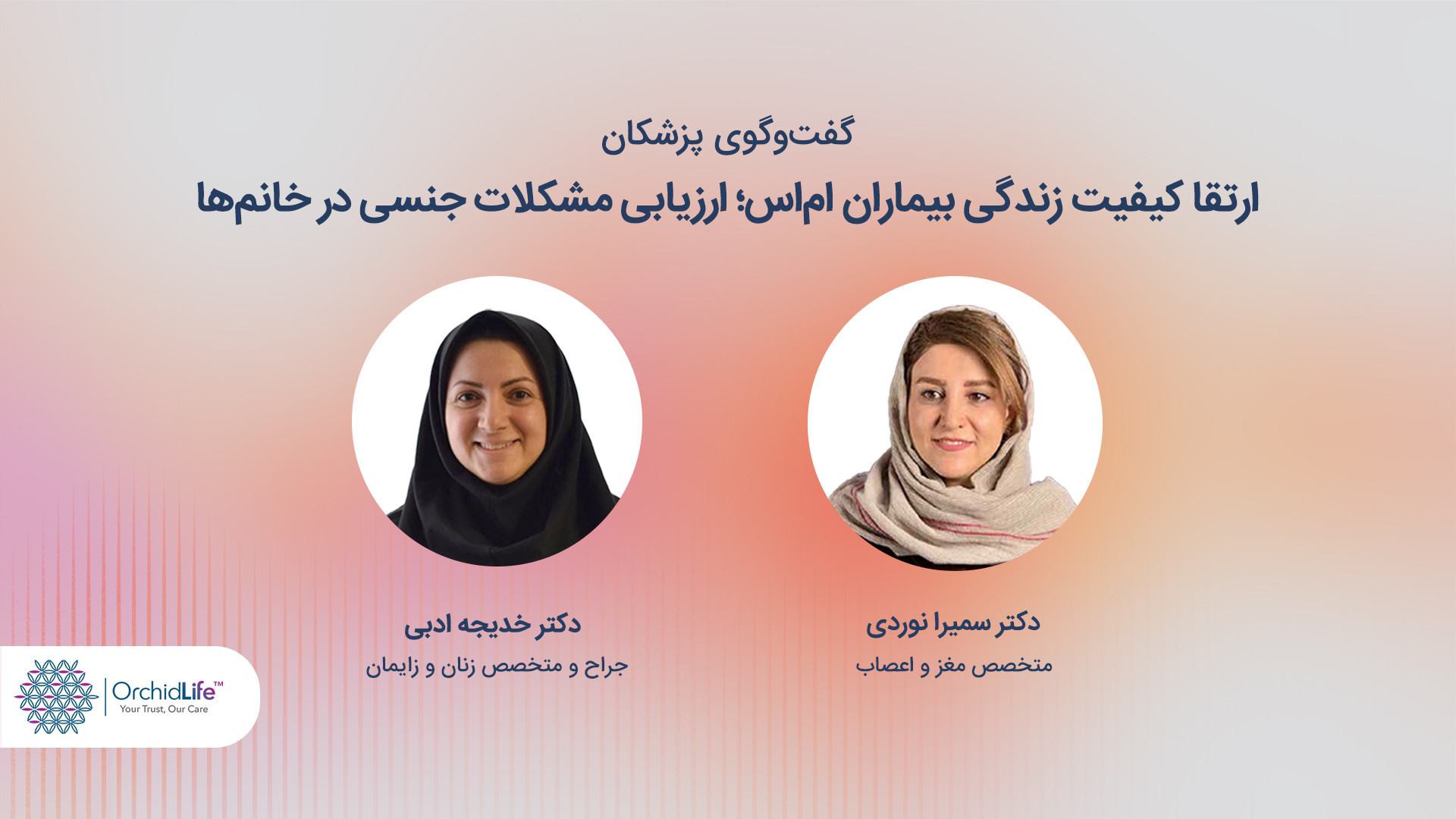 ارتقا کیفیت زندگی بیماران ام اس؛ ارزیابی مشکلات جنسی در خانمها با حضور دکتر سمیرا نوردی متخصص مغز و اعصاب و دکتر خدیجه ادبی جراح و متخصص زنان و زایمان