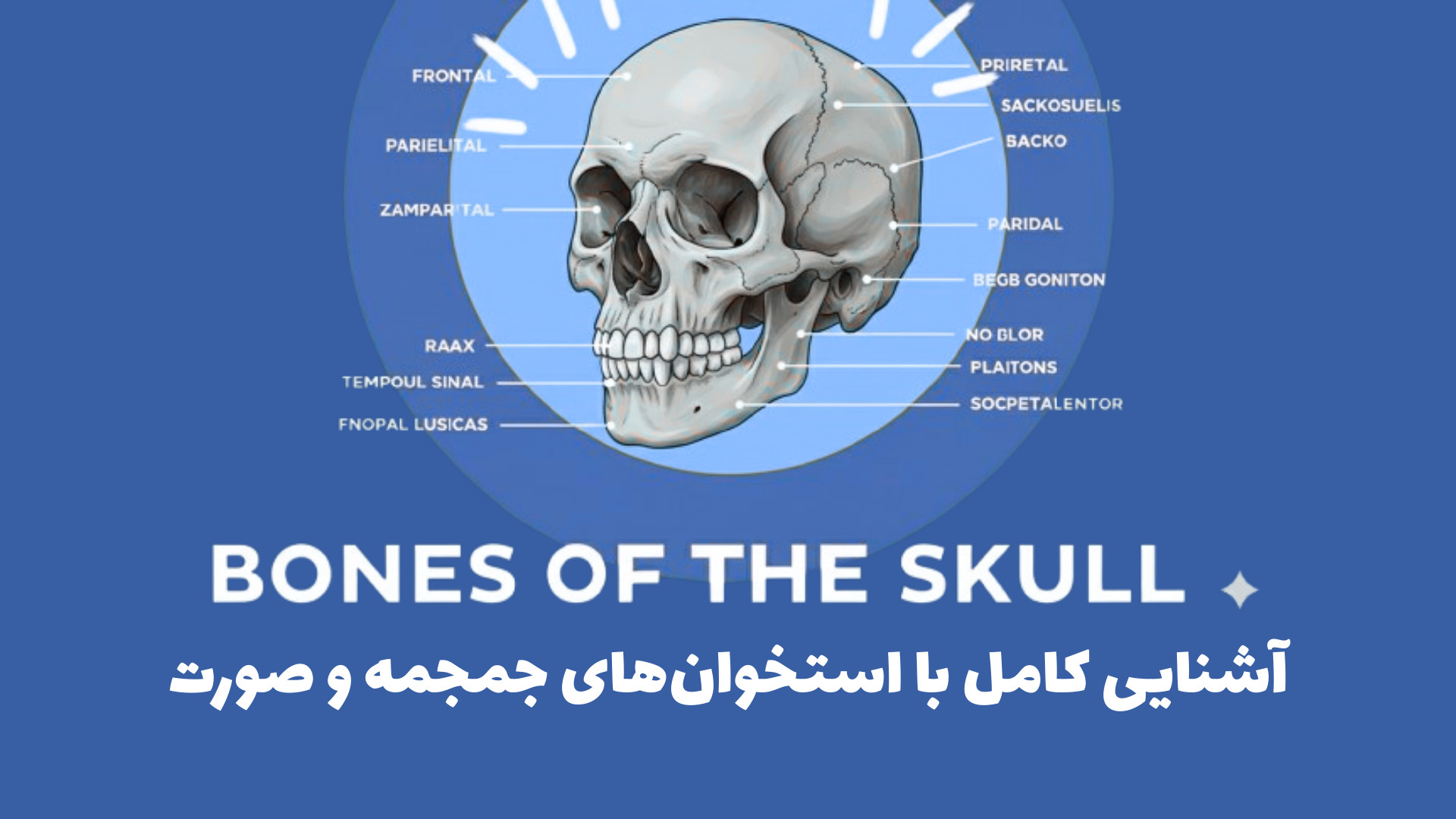 جمجمه انسان از ۲۲ استخوان اصلی تشکیل شده که وظیفه محافظت از مغز، شکلدهی به صورت و ایجاد مسیرهای حسی را بر عهده دارند. این استخوانها به دو بخش تقسیم میشوند؛ استخوانهای جمجمهای یا نورکرانیوم که مغز را در بر میگیرند و شامل ۸ استخوان هستند، و استخوانهای صورت که تعداد آنها ۱۴ عدد است. استخوانهای جمجمهای شامل پسسری، اسفنوئید، اتموئید، پیشانی، دو استخوان آهیانهای و دو استخوان گیجگاهی هستند. بهجز فک پایین، تمام استخوانهای جمجمه توسط درزهایی به نام «سوتور» به هم متصلاند که مفاصل بدون حرکت محسوب میشوند. در بخش صورت، فک پایین بزرگترین و تنها استخوان متحرک جمجمه است. استخوانهایی مثل ماگزیلا در تشکیل فک بالا و سقف دهان نقش دارند و استخوانهای گونه، بینی، اشکی و کام سخت به شکلدهی صورت و حفرههای بینی و چشم کمک میکنند. همچنین شش استخوان بسیار کوچک گوش میانی، یعنی چکشی، سندانی و رکابی، در انتقال صدا نقش حیاتی دارند. شناخت دقیق استخوانهای جمجمه برای درک آناتومی سر، دندانپزشکی، جراحی فک و صورت و علوم پزشکی اهمیت زیادی دارد.