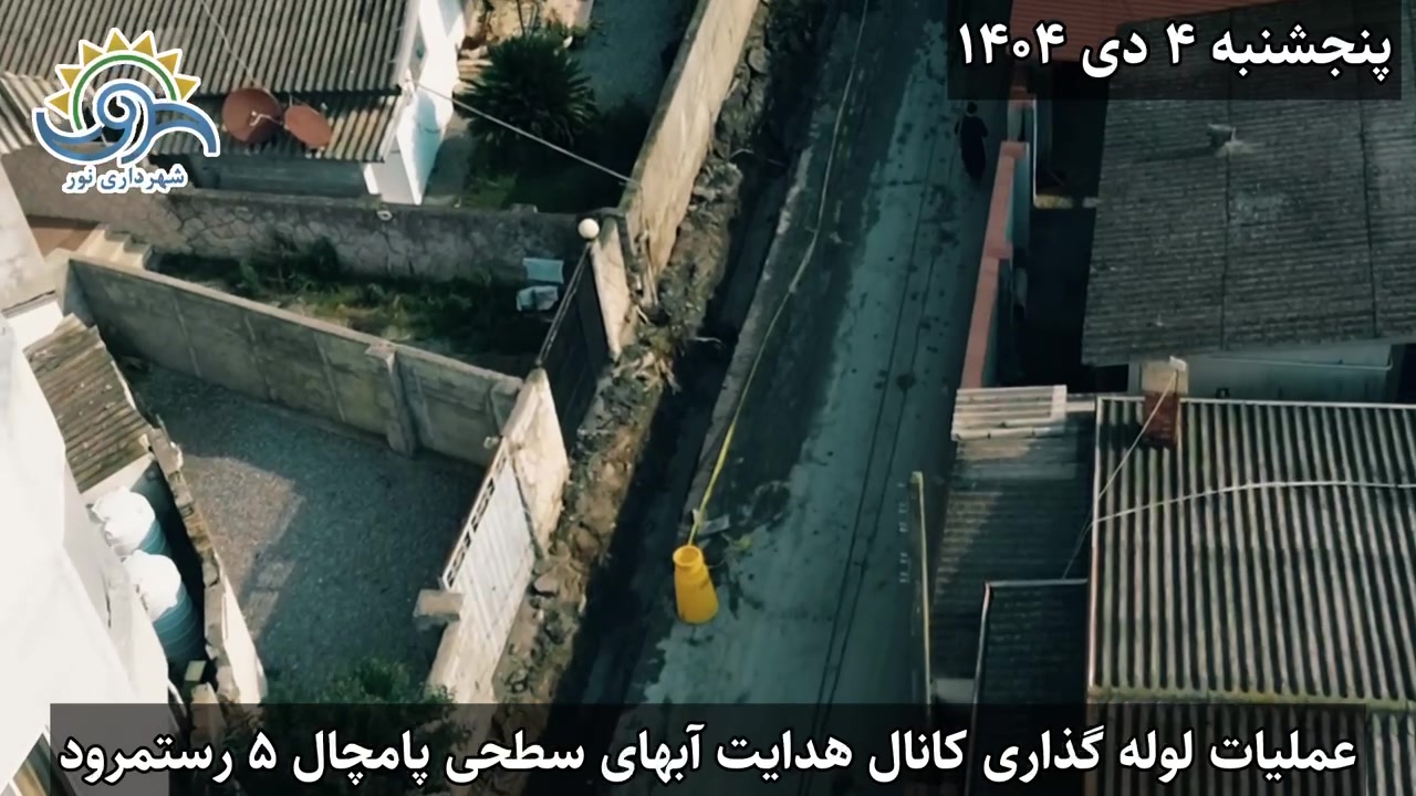 ادامه عملیات لوله گذاری احداث کانال هدایت آبهای سطحی کوچه پامچال ۵ منطقه رستمرود به همت واحد فنی و عمرانی شهرداری نور