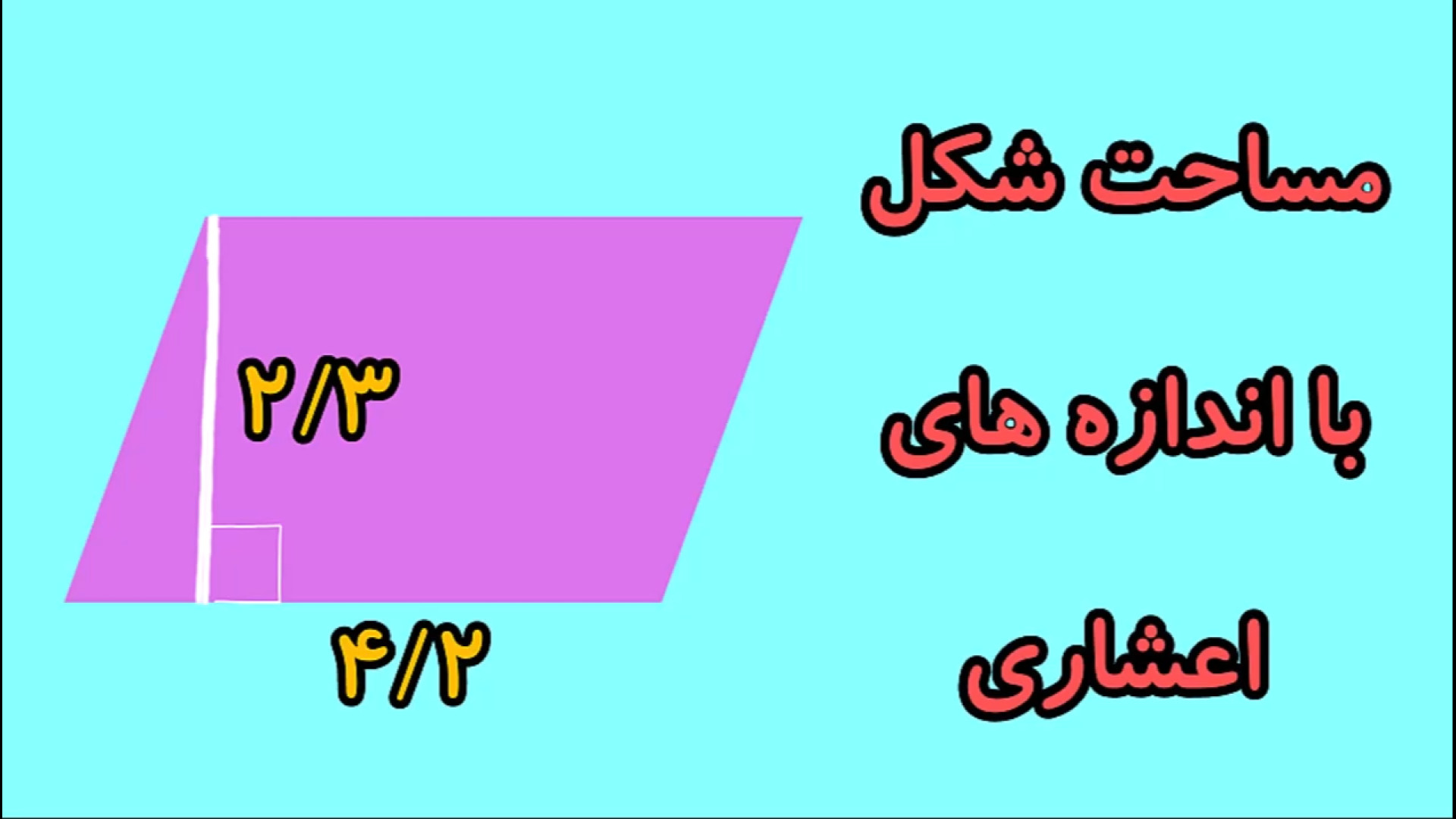مساحت چهار شکل مربع ، مستطیل ، مثلث و متوازی الاضلاع با اندازه های اعشاری فصل سوم ریاضی ششم ، اعداد اعشاری