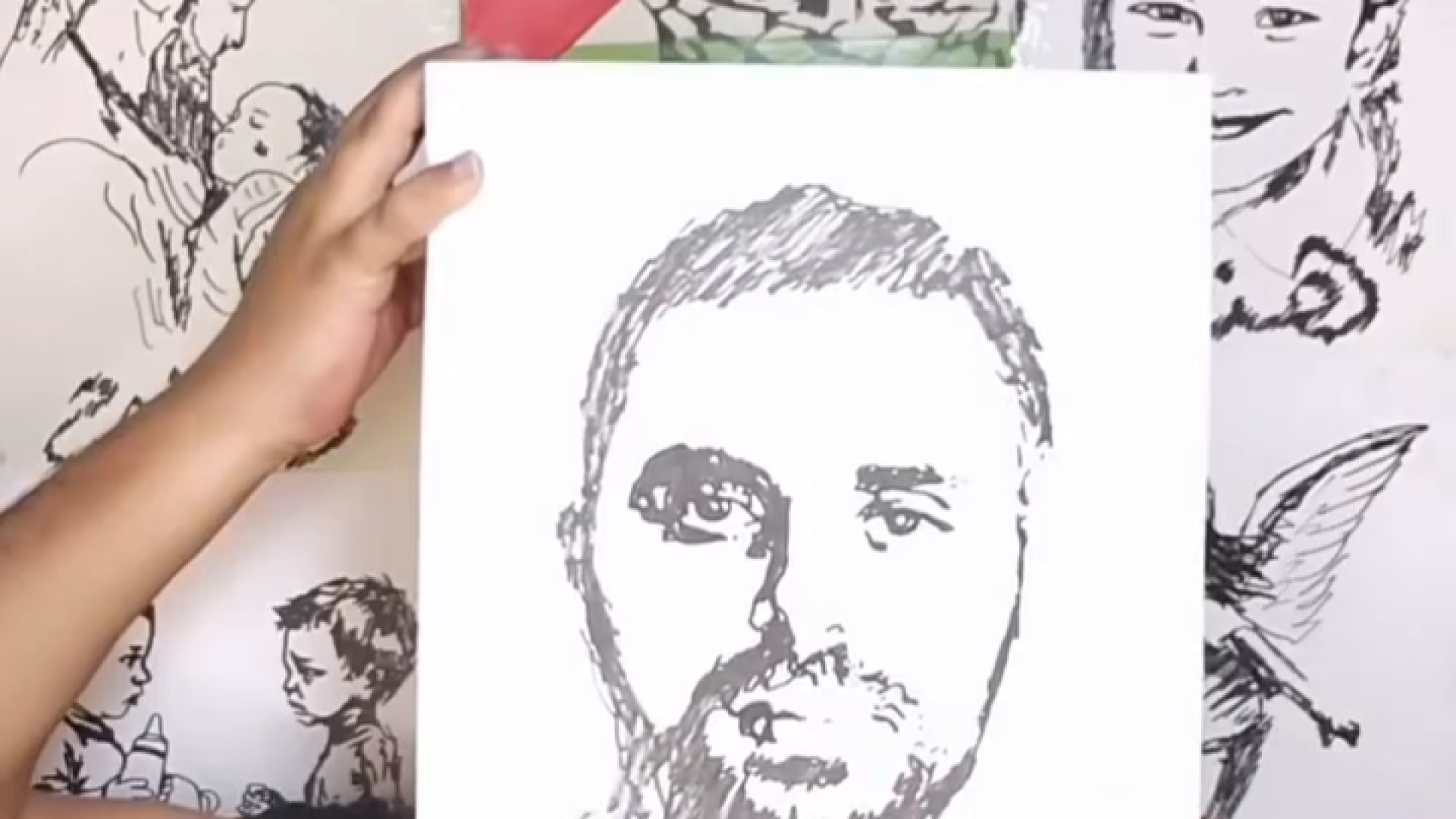 پۆرترێتێکی داهێنەرانەی شەهید ئەبوو عوبەیدە (وتەبێژی پێشووی قەسام) لە لایەن هونەرمەندێکی یەمەنییەوە