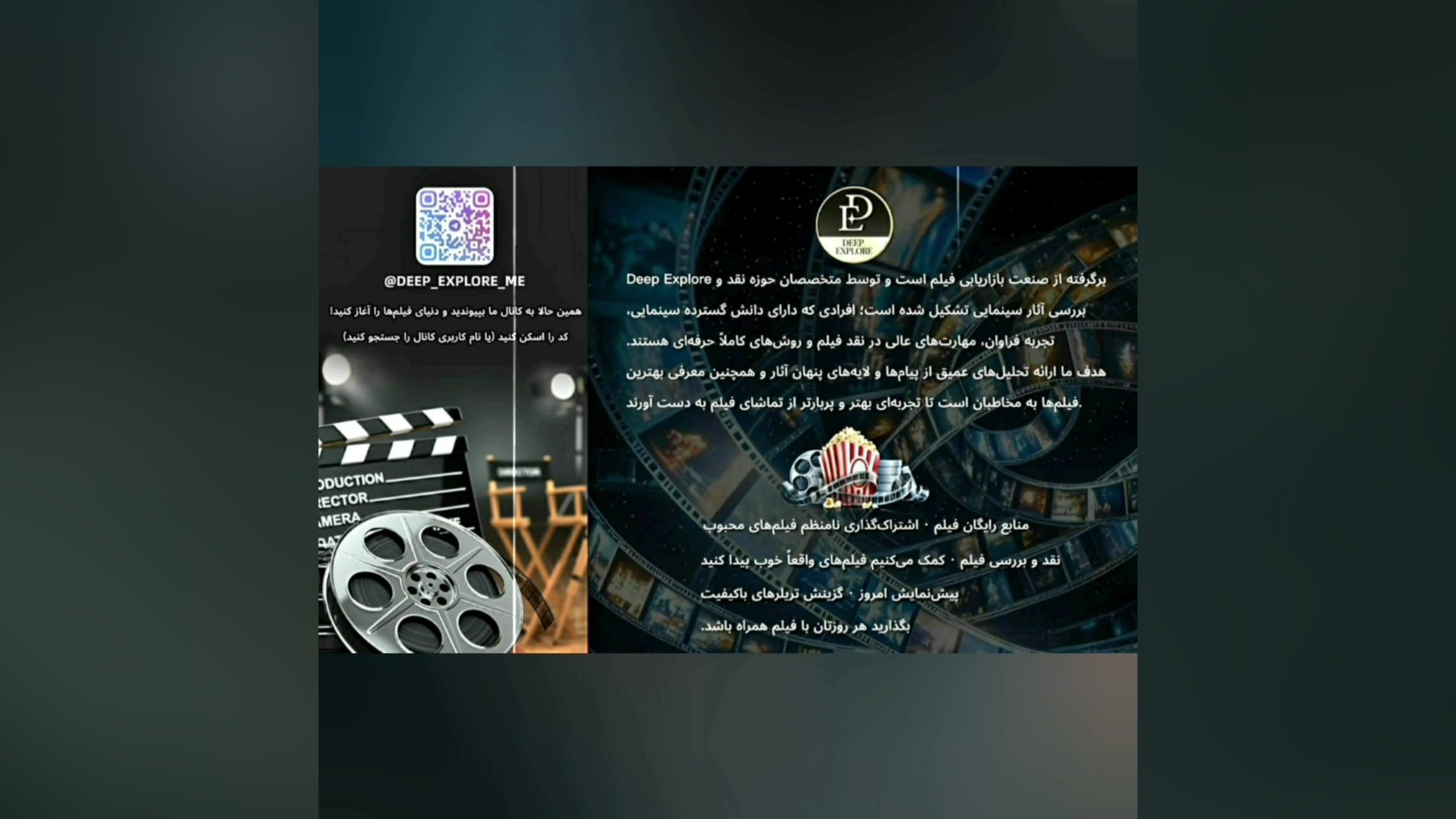 یه کانال که هر عاشقِ فیلمی باید دنبالش کنه توی این کانال، جدیدترین خبرها و اطلاعات سینما رو بهصورت لحظهای بهروزرسانی میکنیم، از جمله: خبرهای اکران و فیلمهای تازه ⭐️ نقدهای قابلاعتماد و بازخورد واقعی مخاطبها پیشنهاد فیلمهای ترند + تحلیلهای عمیق آمار فروش گیشه و روندهای صنعت سینما که هیچ فیلمِ ارزشمند و دیدنیای رو از دست ندی اگه از تبلیغات اغراقآمیز خسته شدی و فقط میخوای سریع، صادقانه و مفید از دنیای فیلم باخبر بشی، این کانال دقیقاً برای توئه. ما رو دنبال کن، داستانهای پشتِ فیلمها رو کشف کن، و دنیای سینما رو با یه نگاه آگاهانهتر و حرفهایتر ببین. لینک کانال: https://t.me/Deep_Explore_me همین الان فالو کن — هیچ آپدیتی رو از دست نده