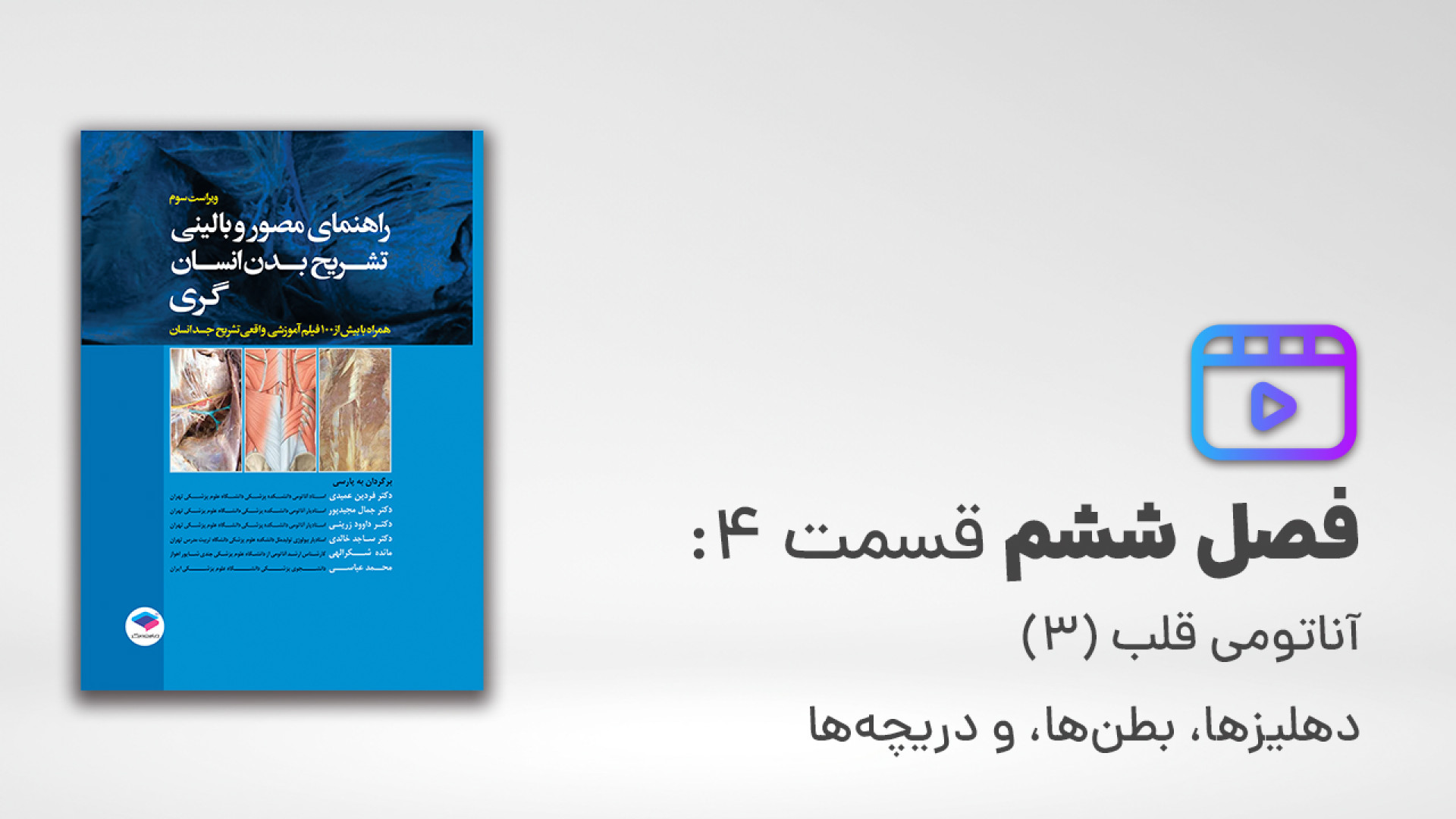 این ویدیو قسمت چهارم از فصل ششم (قلب) کتاب راهنمای بالینی و مصور تشریح بدن انسان گری ویرایش سوم 2025 میباشد که به تشریح دهلیزها، بطنها، و دریچههای قلب پرداخته است.