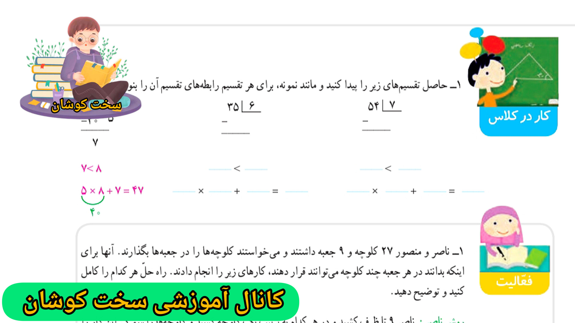 صفحه ۶۱ ریاضی چهارم دبستان | کاردر کلاس صفحه ۶۱ ریاضی چهارم دبستان