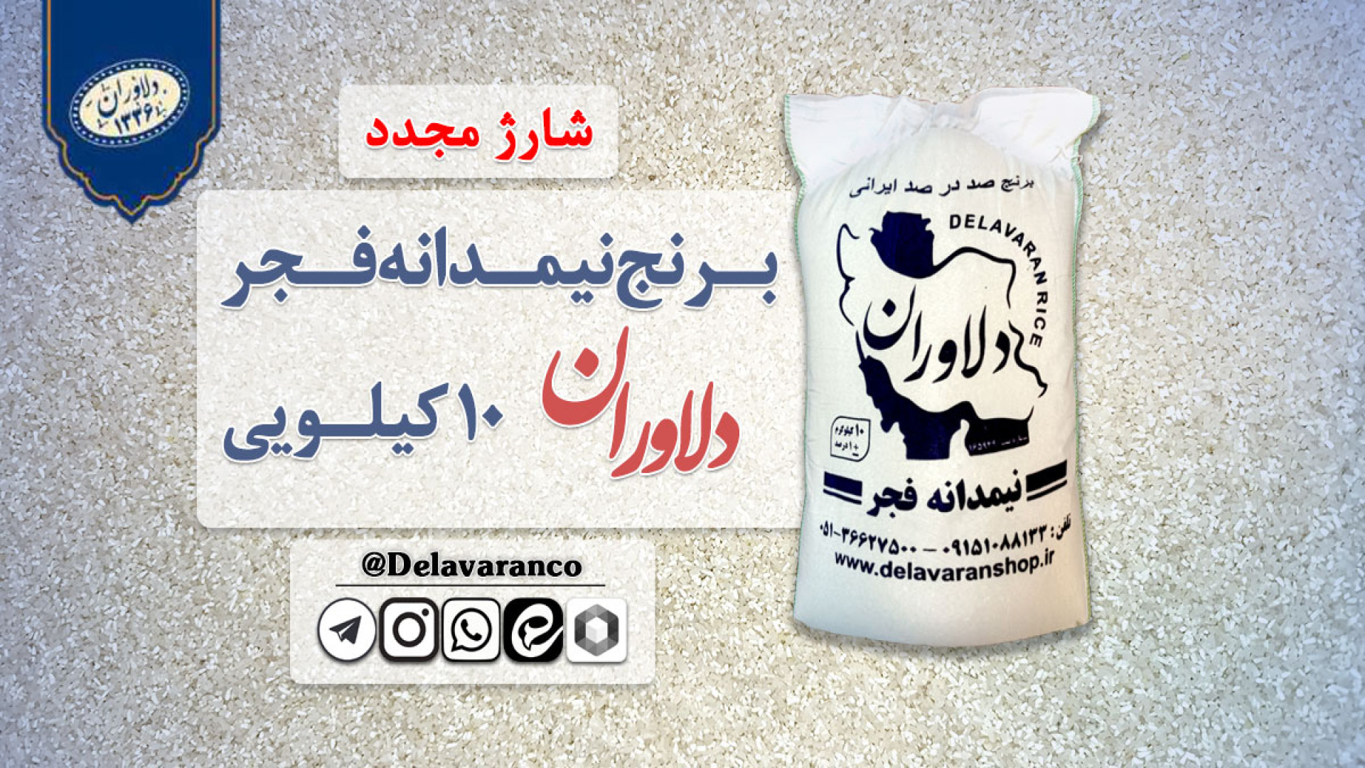 برنج نیمدانه طارم فجر ۱۰ کیلویی دلاوران (شارژ مجدد 1404/10/04)