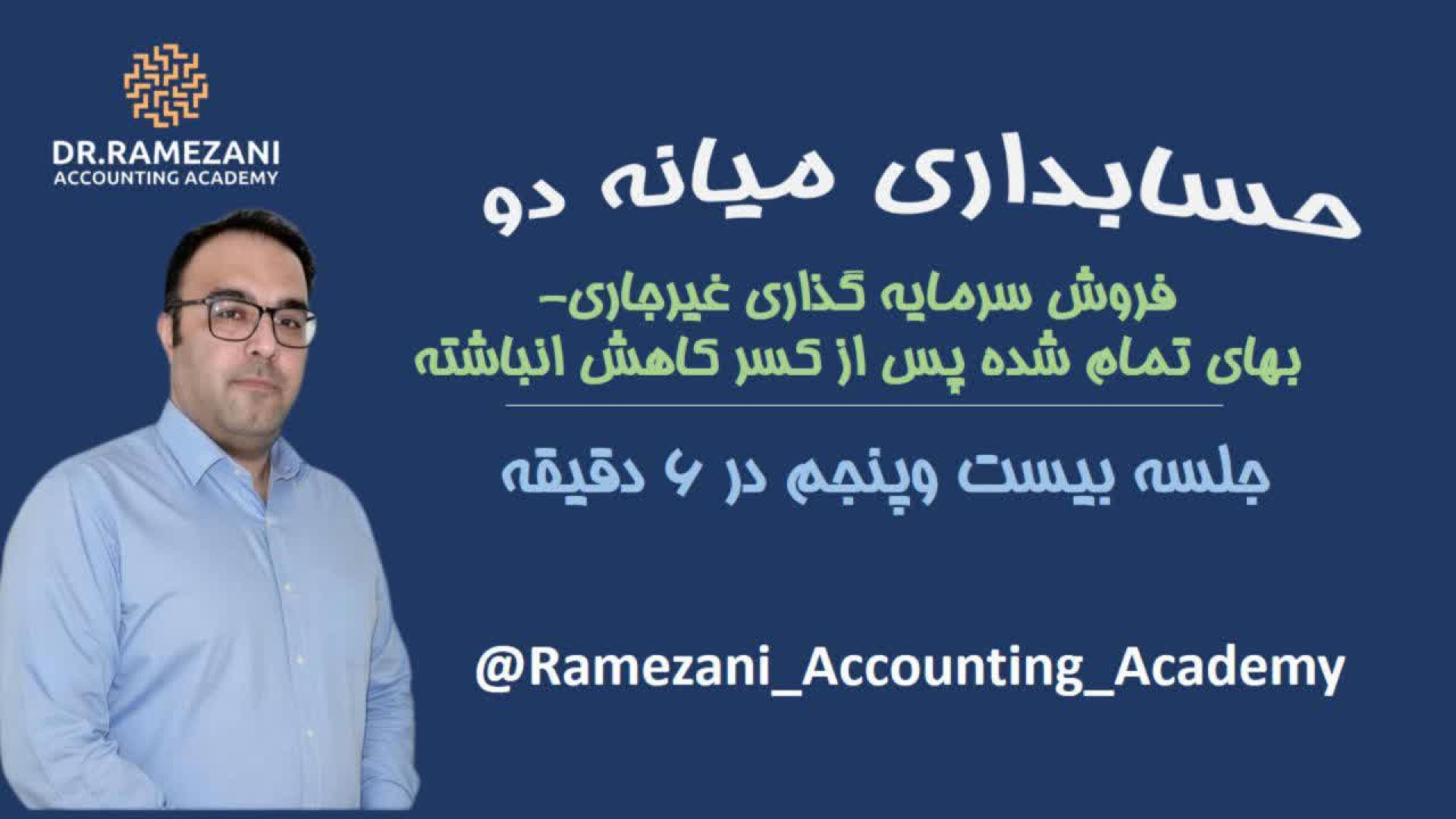 # حسابداری میانه ۲ | جلسه ۲۵ فروش سرمایهگذاریهای غیرجاری (بلندمدت) بر مبنای بهای تمام شده پس از کسر کاهش ارزش انباشته در این جلسه حیاتی از درس حسابداری میانه ۲، نحوه ثبت فروش و واگذاری سرمایهگذاریهای بلندمدتی را آموزش میبینیم که طبق استانداردهای حسابداری، بر اساس روش بهای تمام شده پس از کسر کاهش ارزش انباشته اندازهگیری شدهاند. این مبحث یکی از کلیدیترین و پرتکرارترین سرفصلها در امتحانات دانشگاهی است. ### موضوعات اصلی پوشش داده شده در این ویدیو: * فروش و واگذاری سرمایهگذاریهای غیرجاری (بلندمدت). * اصول حذف کلیه حسابهای مرتبط با سرمایهگذاری از دفاتر (مانند حساب کاهش ارزش انباشته). * نحوه محاسبه مبلغ دفتری هر سهم و تخصیص کاهش ارزش انباشته متناسب با سهام فروخته شده. * روش محاسبه خالص مبلغ دریافتی از فروش سهام با در نظر گرفتن کارمزد کارگزاری. * ثبت جامع حسابداری برای شناسایی موجودی نقد، حذف سرمایهگذاری، حذف کاهش ارزش و شناسایی سود یا زیان واگذاری. * حل مثال کامل عددی از فروش سهام شرکتهای میگ و یاس توسط شرکت رنگینکمان. -- ▶️ آپارات: https://aparat.com/v/syt7ar5 ▶️ یوتیوب: https://youtu.be/a۹۷۲F۹Sv۲fA?si=TwFKENc۴KeHKmt۷r پشتیبانی آموزشی: ۰۹۱۳۲۶۰۶۰۸۷ آکادمی حسابداری رمضانی آموزش مفهومی، تحلیلی و استانداردمحور حسابداری از پایه تا پیشرفته با تدریس دکتر محمدحسین رمضانی. شبکههای اجتماعی: اینستاگرام: [https://www.instagram.com/Ramezani\_Accounting\_Academy](https://www.instagram.com/Ramezani_Accounting_Academy) تلگرام: [https://t.me/Dr\_mh\_Ramezanizare](https://t.me/Dr_mh_Ramezanizare) یوتیوب: [https://www.youtube.com/@Ramezani\_Accounting\_Academy](https://www.youtube.com/@Ramezani_Accounting_Academy) آپارات: [https://www.aparat.com/Ramezani\_Accounting\_Academy](https://www.aparat.com/Ramezani_Accounting_Academy)