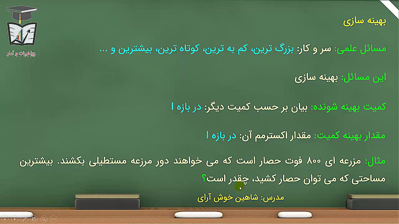 ریاضیات عمومی (کاربرد مشتق: بهینه سازی) بازدید : 9 0 لایک thermodynamics منتشر شده در تاریخ 06 دی 1404 02:17 مدرس: شاهین خوش آرای، شماره تماس: 09125645969 وبلاگ:surfacetension.blog.ir ادامه تحصیلات و یادگیری