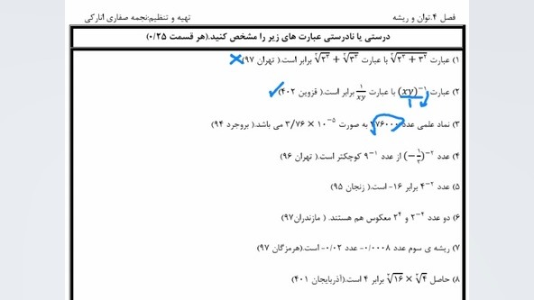 ریاضی نهم درستی عبارتها,ریاضی نهم گنجینه سوالات