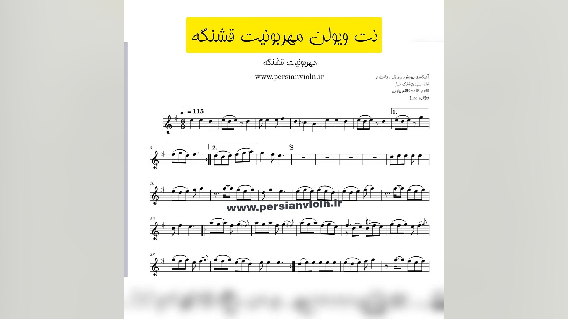 نت ویولن مهربونیت قشنگه | حمیرا | تنظیم کاظم رزازان