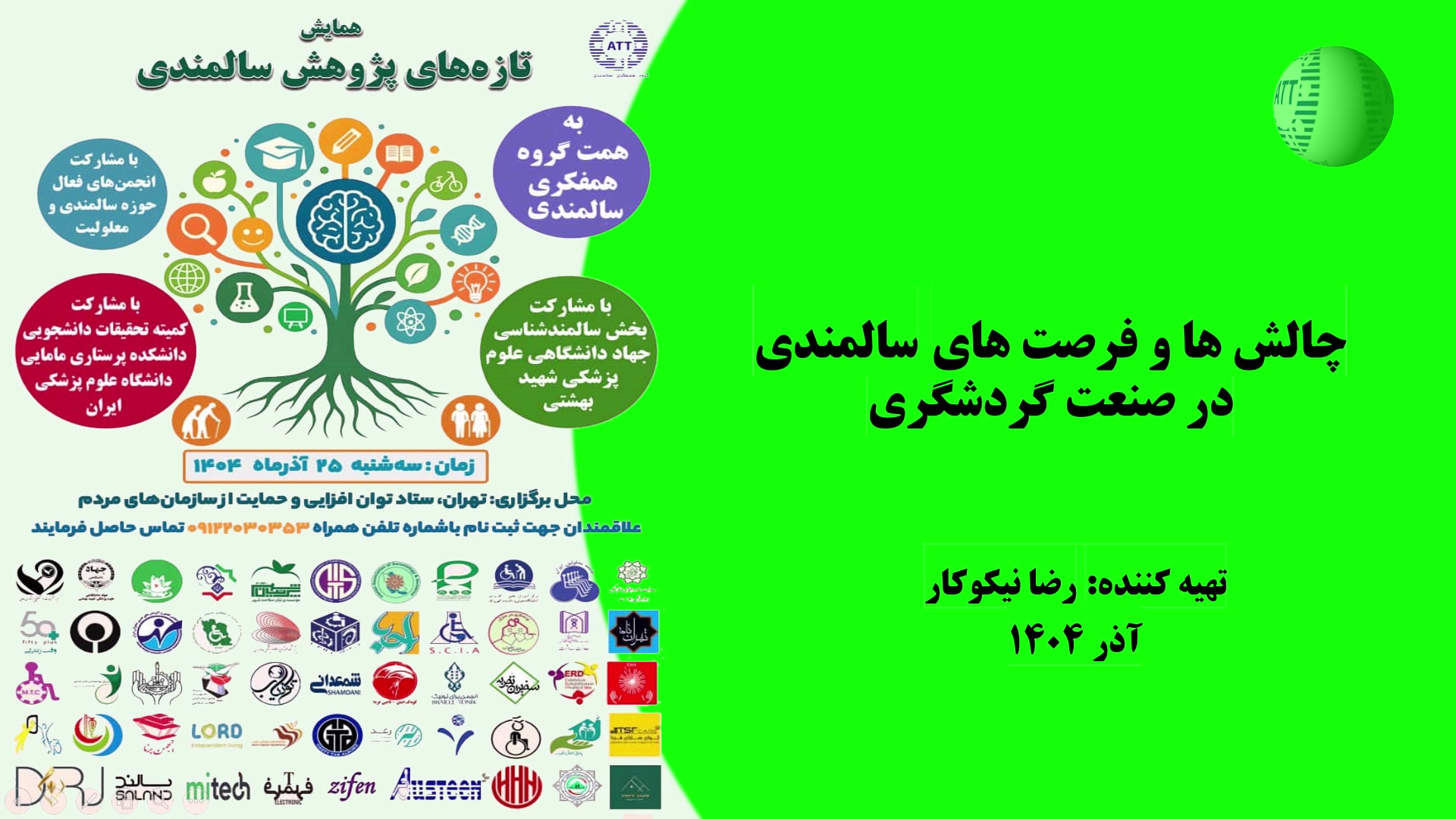 این کلیپ توسط گروه همفکری سالمندی با مشارکت مرکز تحقیقات دانشجویی دانشکده پرستاری دانشگاه علوم پزشکی ایران،جهاد دانشگاهی علوم پزشکی شهید بهشتی ، موسسه پرنیان سلامت شهر، مرکز خدمات جامع توانبخشی روزانه وقت زندگی ،موسسه بنیاد فرزانگان-بهار عمر زندگی ،بنیاد خیریه معلولین ایرانیان ،مرکز حمایت از معلولین ضایعات نخاعی ایران ،،شرکت موژان طب،شرکت کیان تجهیز مهرآفرین ،شرکت توان سازان فردا ،موسسه سفیران تجربه ، شرکت آستین یار ،موسسه نیکوکاری رعد و شرکت گیتی تک البرز تولید و منتشر شده است .در همایش تازه های پژوهش سالمندی که در تاریخ 25 آذر 1404 برگزار شد ، آقای دکتر رضا نیکوکار دارای دکتری عمومی و MPH سالمندی در خصوص چالش ها و فرصت های سالمندی در صنعت گردشگری سخنرانی ارائه کردندکه می تواند برای علاقمندان مفید واقع شود
