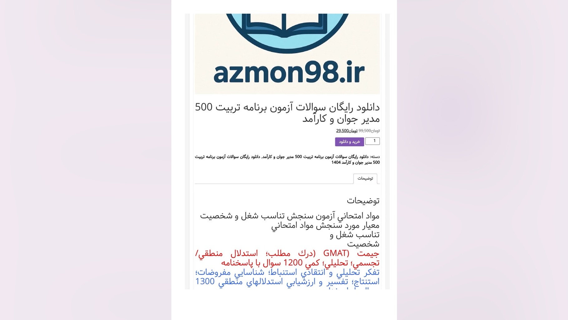 جهت دانلود رایگان بقیه سوالات بر روی لینک زیر( آبی )کلیک کنید : https://azmon98.ir/njaz سوال: تفکر انتقادی چیست؟ الف) روشهای حل مسئله ب) ارزیابی و تجزیه و تحلیل اطلاعات ج) توانایی حفظ اطلاعات د) هیچکدام پاسخ: ب) ارزیابی و تجزیه و تحلیل اطلاعات پاسخ تشریحی: تفکر انتقادی شامل توانایی ارزیابی و تجزیه و تحلیل اطلاعات بهطور منطقی و سیستماتیک است. لینک سوال: کدام یک از موارد زیر به عنوان نشانهای از تفکر تحلیلی در نظر گرفته میشود؟ الف) جستجوی علت و معلول ب) تکرار اطلاعات ج) قبول کردن نظرات دیگران بدون پرسش د) هیچکدام پاسخ: الف) جستجوی علت و معلول پاسخ تشریحی: توانایی شناسایی و تحلیل روابط علت و معلولی نشاندهنده تفکر تحلیلی است. لینک سوال: برای ارزیابی کیفیت اطلاعات، کدام یک از معیارهای زیر مهم است؟ الف) تاریخ انتشار ب) منابع ج) نویسنده د) همه موارد پاسخ: د) همه موارد پاسخ تشریحی: تاریخ انتشار، منابع و نویسنده از جمله معیارهای مهم برای ارزیابی کیفیت اطلاعات هستند. لینک سوال: استنباط منطقی در فرآیند تفکر انتقادی به چه معناست؟ الف) پیشبینی نتیجه بر اساس شواهد موجود ب) تکیه بر احساسات ج) قبول اطلاعات بهصورت بدون چالش د) هیچکدام پاسخ: الف) پیشبینی نتیجه بر اساس شواهد موجود پاسخ تشریحی: استنباط منطقی به معنای پیشبینی و تحلیل نتیجهها بر اساس شواهد و اطلاعات موجود است. لینک سوال: قلمروهای تفکر تحلیلی شامل چه مواردی است؟ الف) شناخت ب) تحلیلی ج) ارزیابی د) همه موارد پاسخ: د) همه موارد پاسخ تشریحی: قلمروهای تفکر تحلیلی شامل شناخت، تحلیل و ارزیابی اطلاعات است. لینک سوال: کدام یک از این موارد به عنوان یک مانع برای تفکر انتقادی شناخته میشود؟ الف) پیشداوری ب) پرسشگری ج) کنجکاوی د) خلاقیت پاسخ: الف) پیشداوری پاسخ تشریحی: پیشداوری میتواند به عنوان مانع در راه تفکر انتقادی عمل کرده و موجب انحراف در تحلیل اطلاعات شود. لینک سوال: کدام یک از این مهارتها در تفکر انتقادی ضروری است؟ الف) جمعآوری اطلاعات ب) تجزیه و تحلیل اطلاعات ج) نتیجهگیری منطقی د) همه موارد پاسخ: د) همه موارد پاسخ تشریحی: جمعآوری، تجزیه و تحلیل اطلاعات و نتیجهگیری منطقی همگی از مهارتهای ضروری در تفکر انتقادی هستند. لینک سوال: برای تجزیه و تحلیل یک مشکل، کدام یک از این مراحل باید طی شود؟ الف) شناسایی مشکل