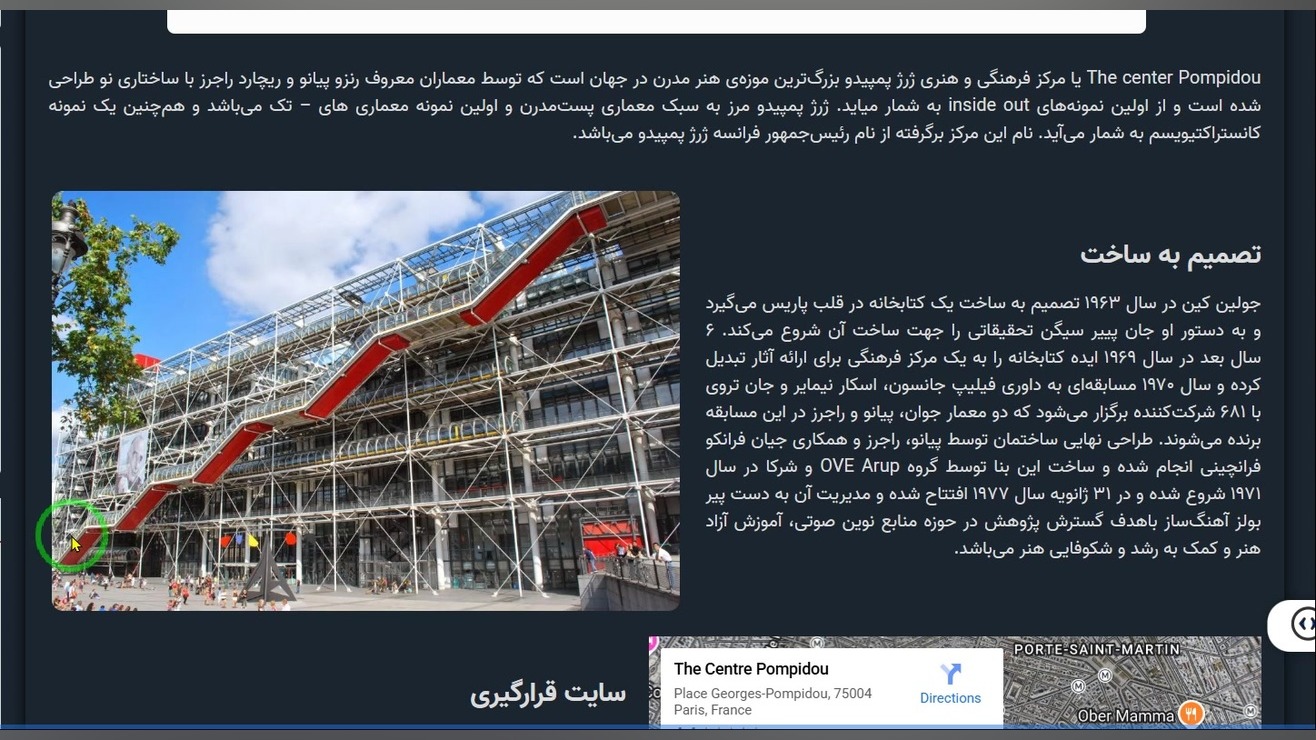 در راستای آشنایی دانشجویان رشته های هنر علی الخصوص معمرای و شهرسازی و مرمت معمار و مرمت شهری، بررسی تحلیلی بر روی تحلیل معماری مرکز هنری ژرژ پمپیدو صورت گرفت و مختصات اثر و عملکرد های مستقر در آن مورد بررسی واقع شد.