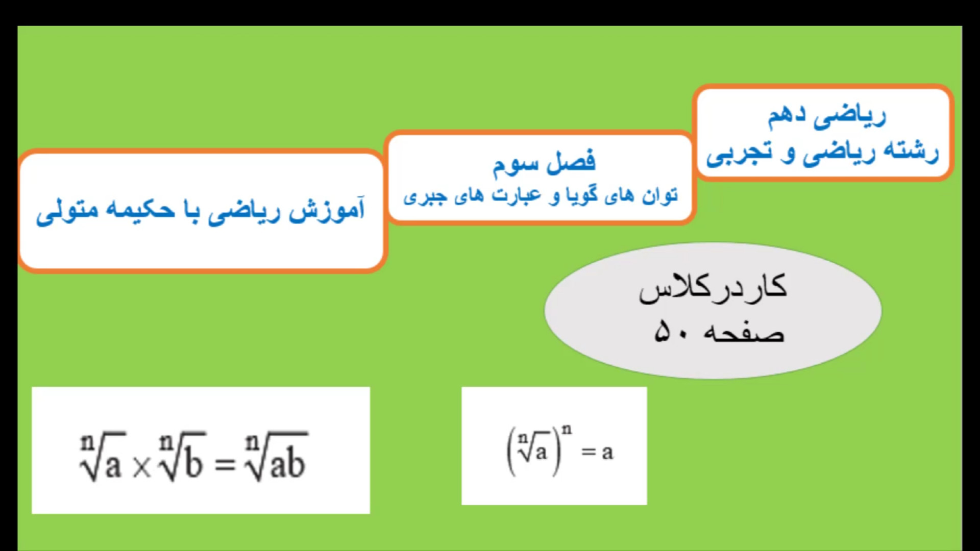 کاردرکلاس صفحه 50 (فصل سوم ریاضی دهم رشته های تجربی و ریاضی)